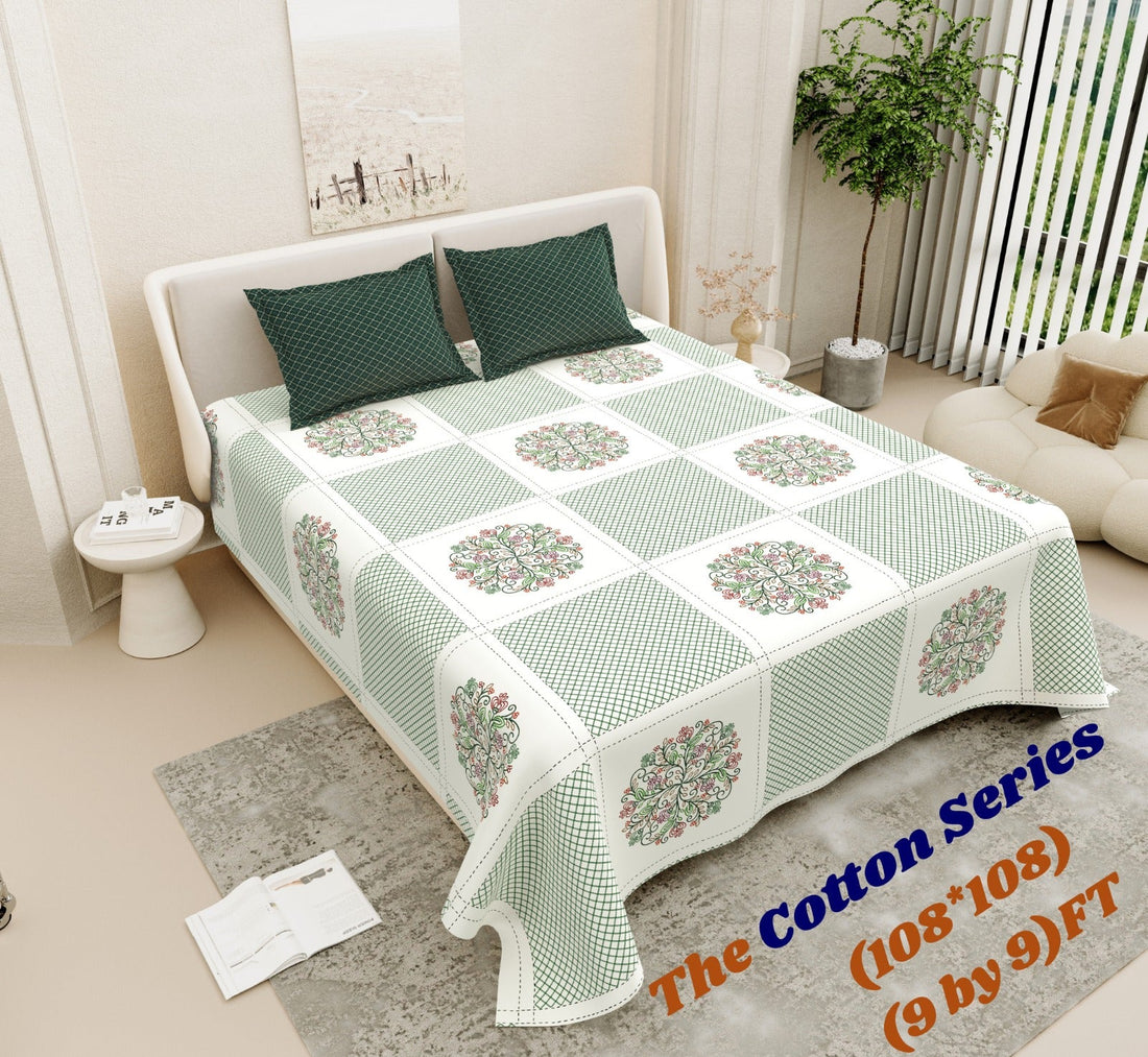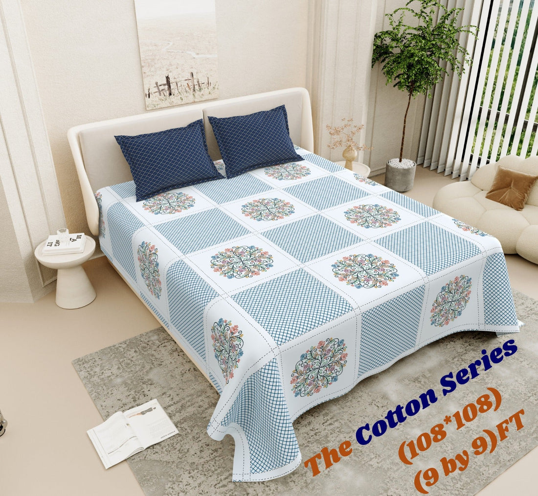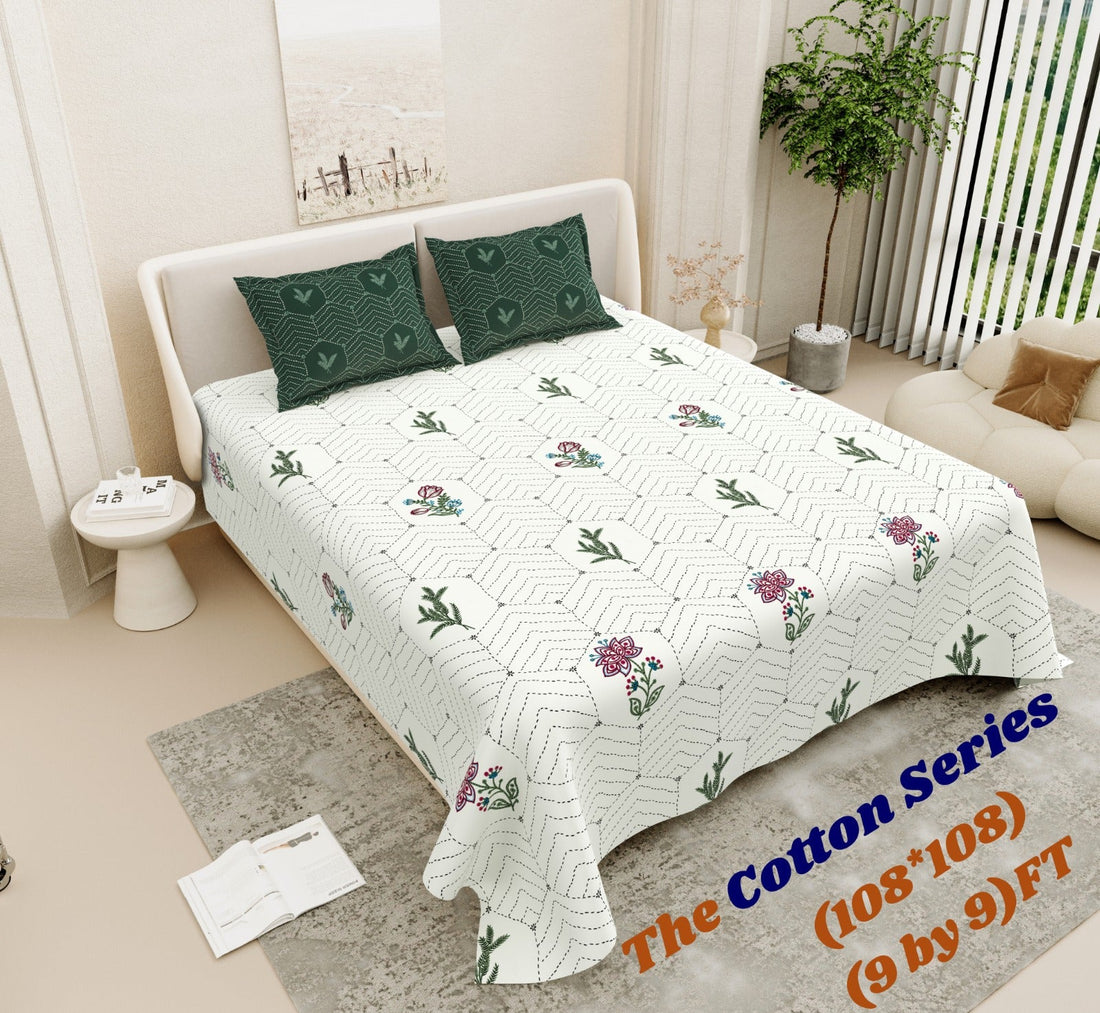 Cotton designer king size bedsheet with 2 pillow cover