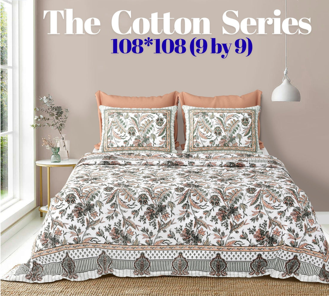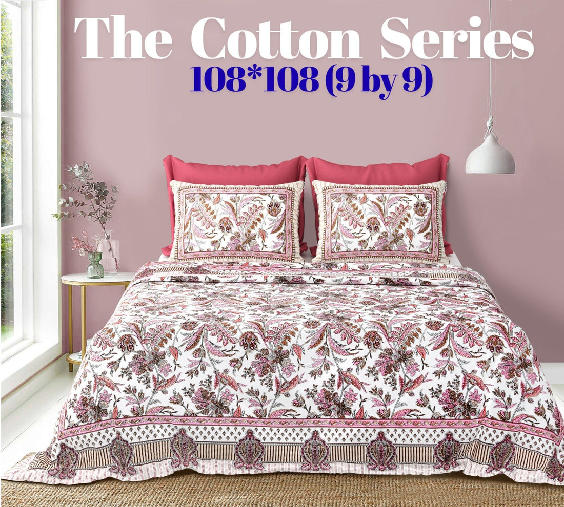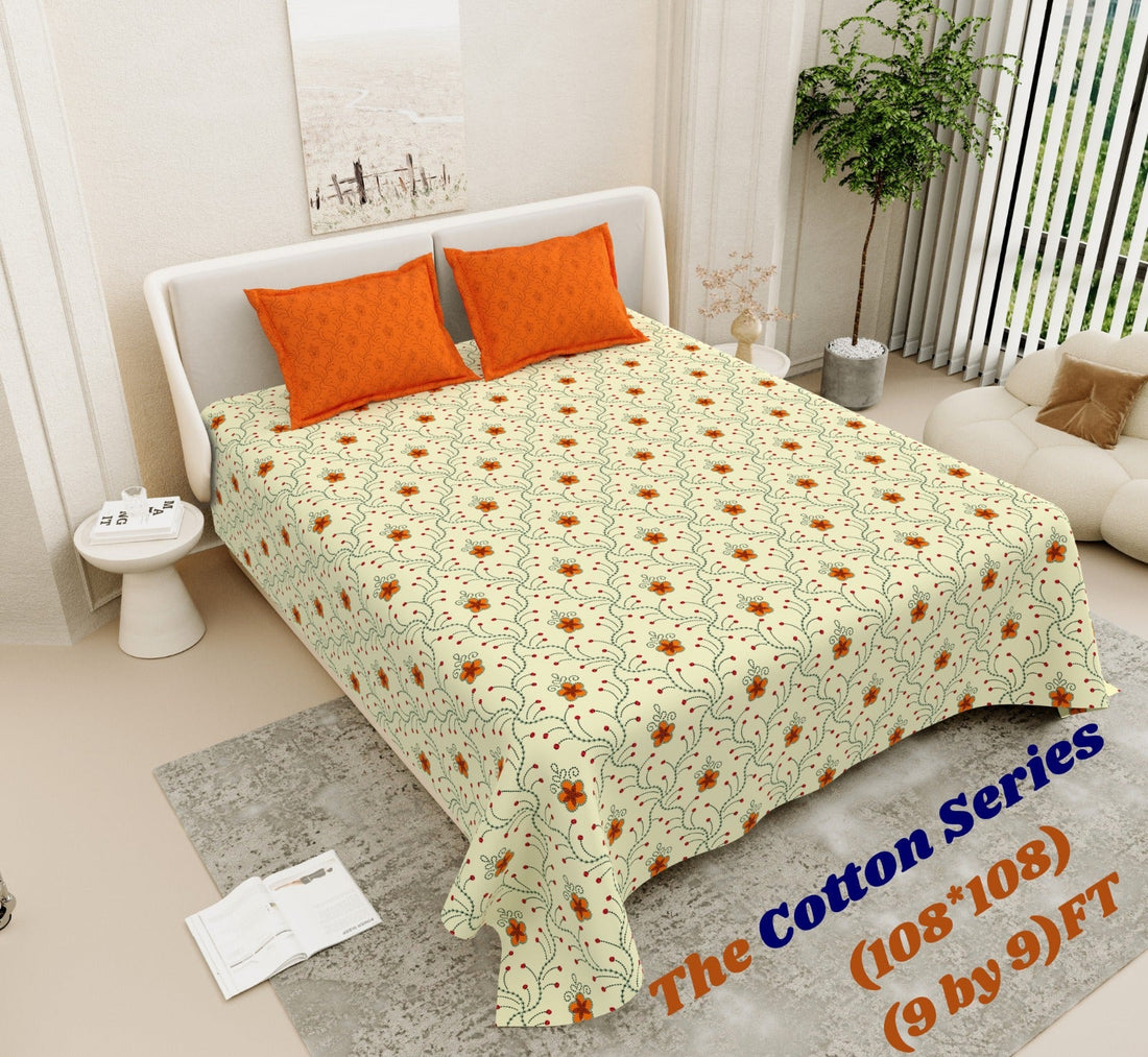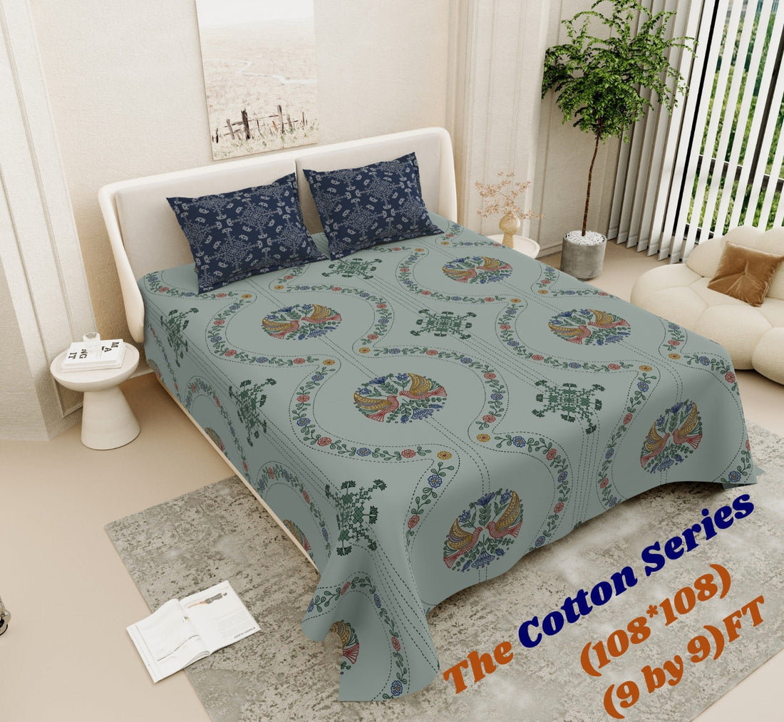 Cotton designer king size bedsheet with 2 pillow cover