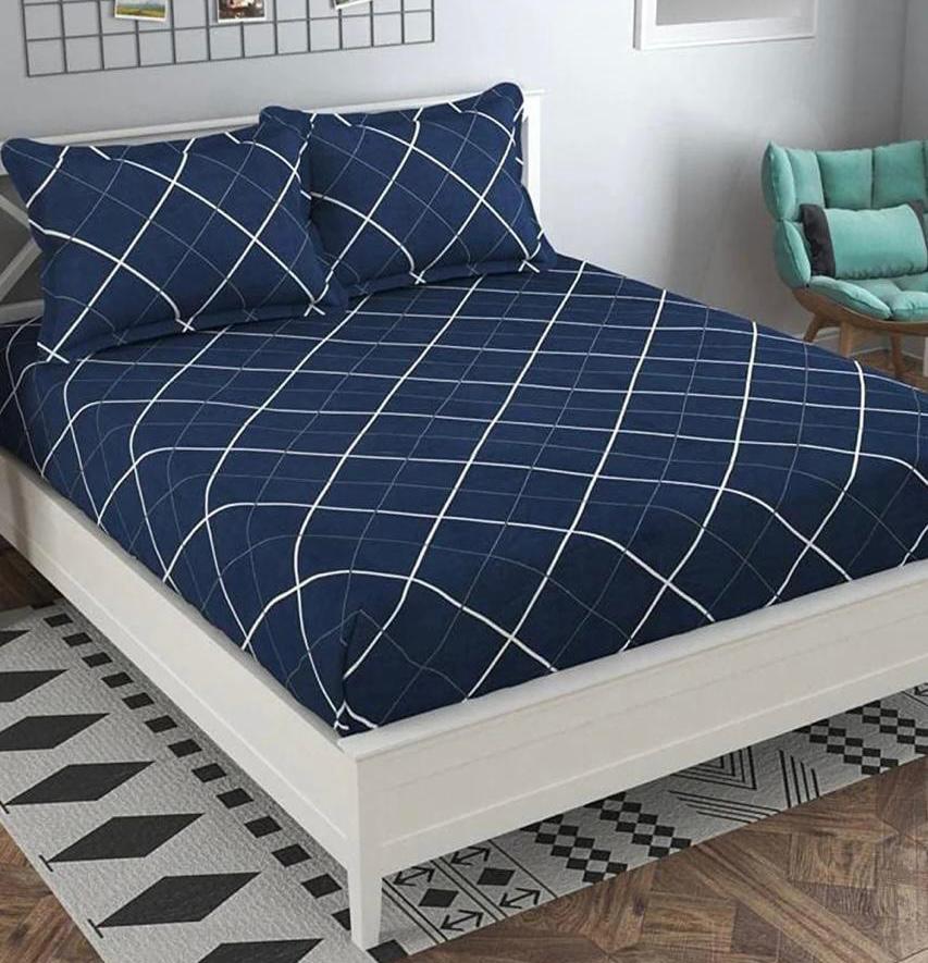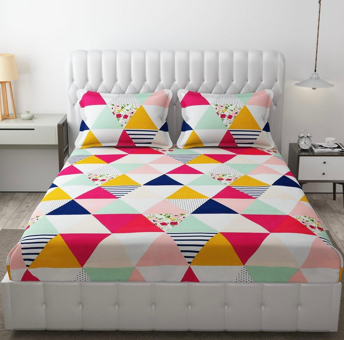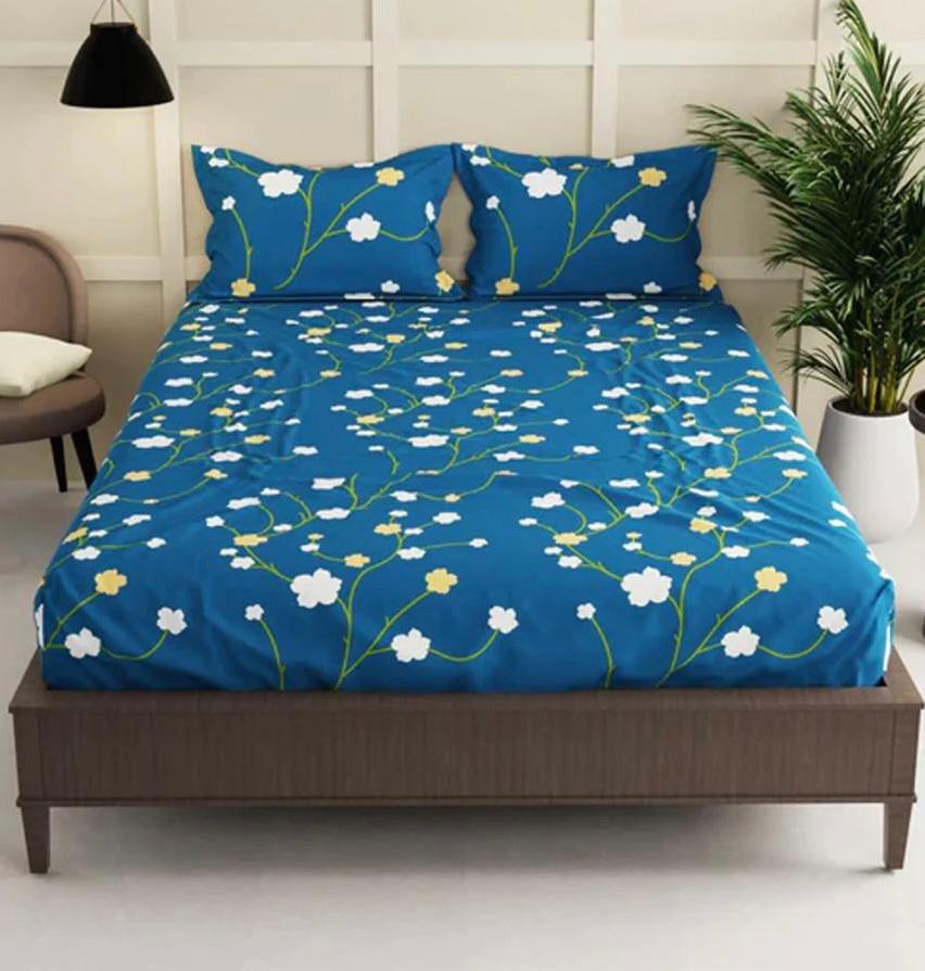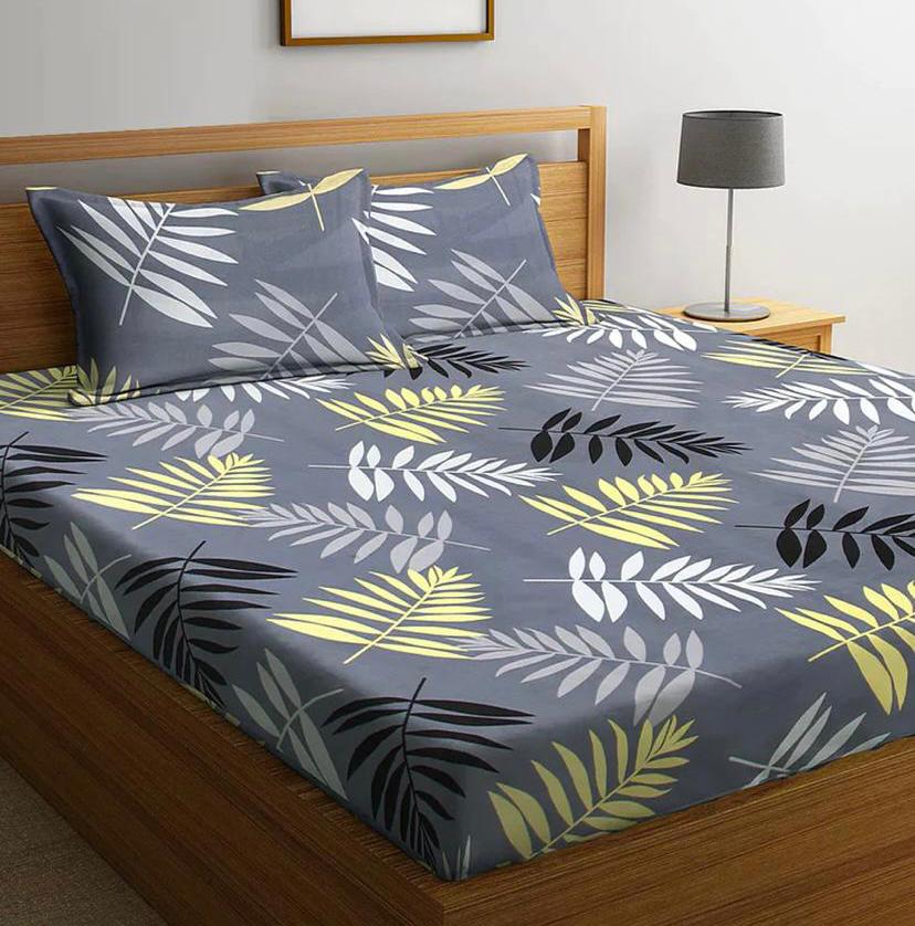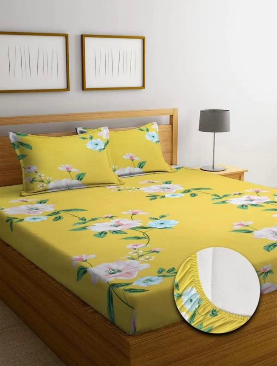 Cotton designer elastic fitted bedsheet with 2 pillow cover