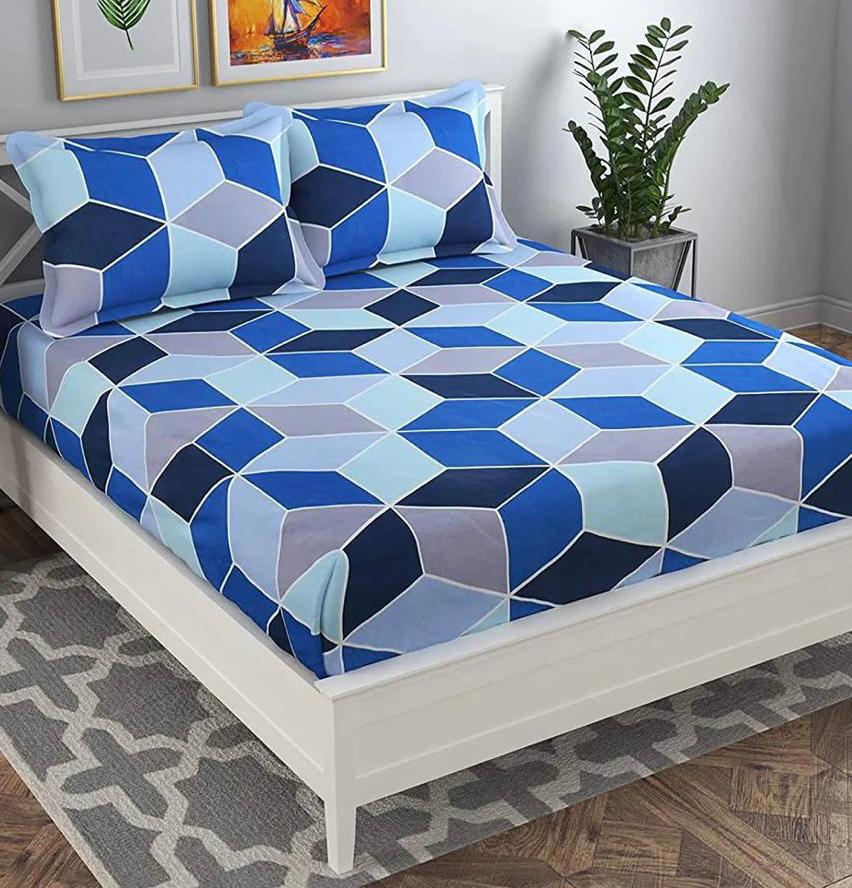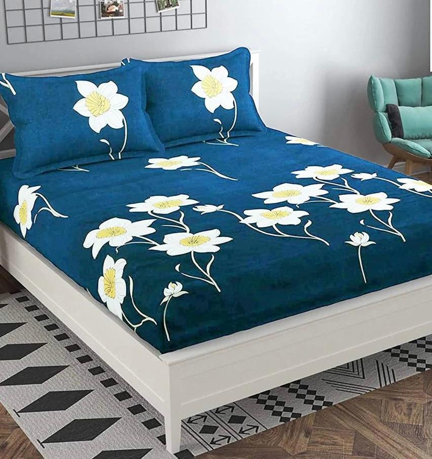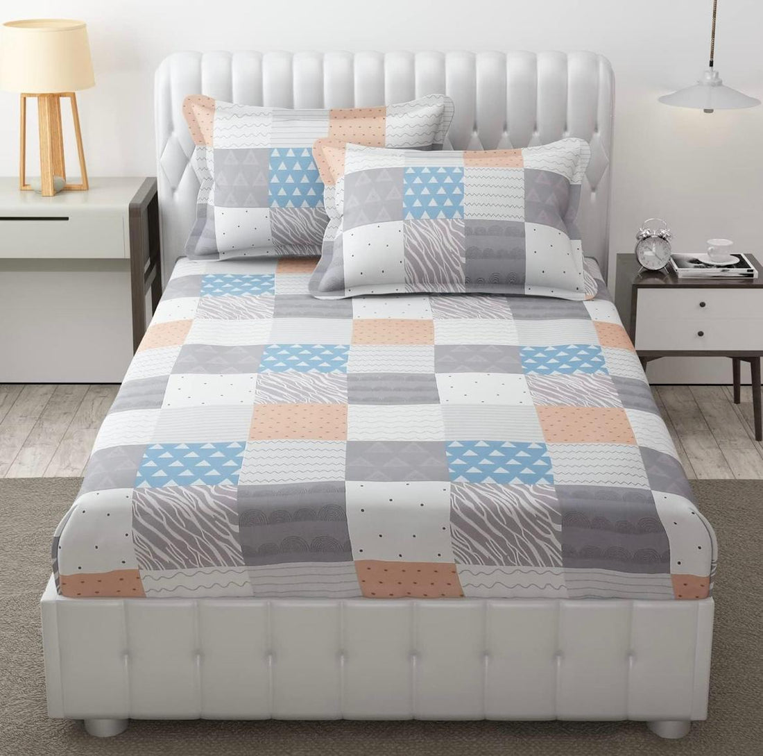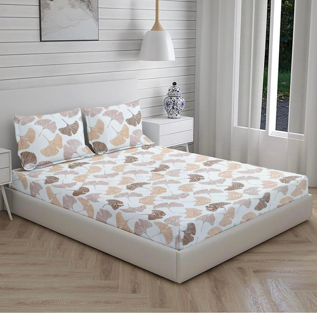Cotton designer elastic fitted bedsheet with 2 pillow cover