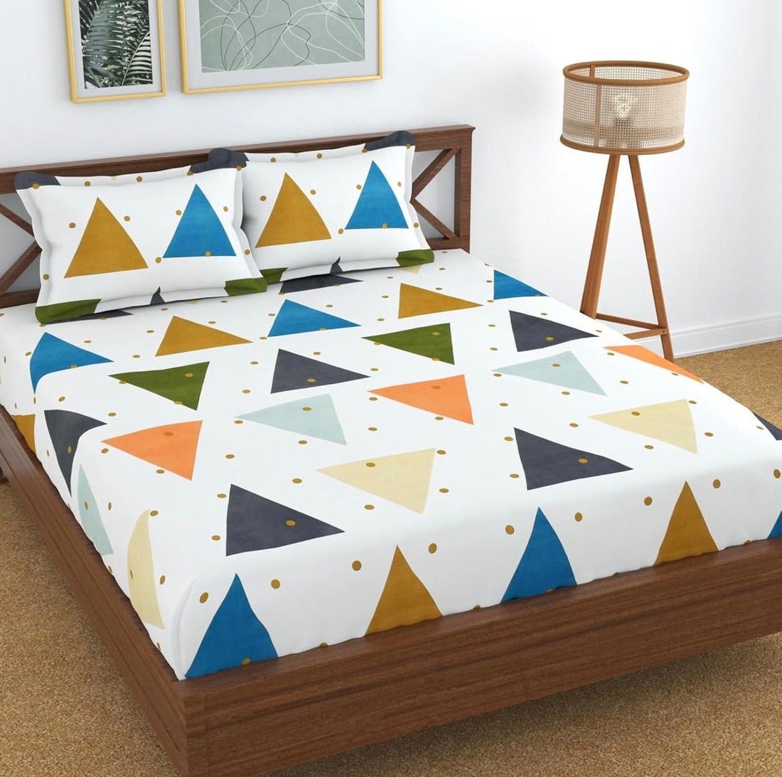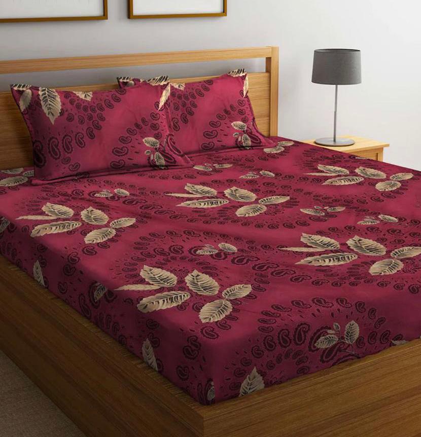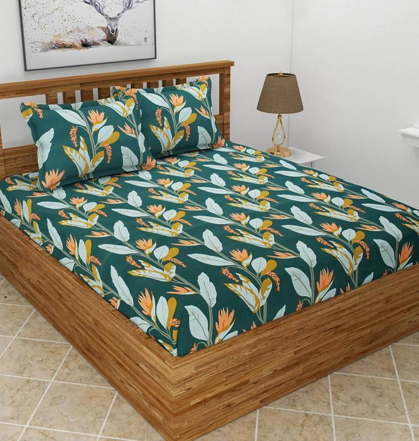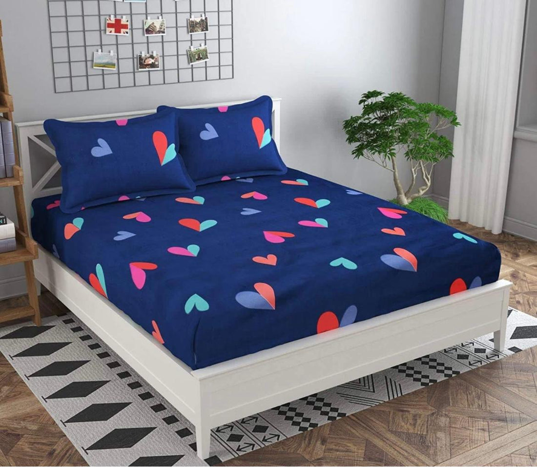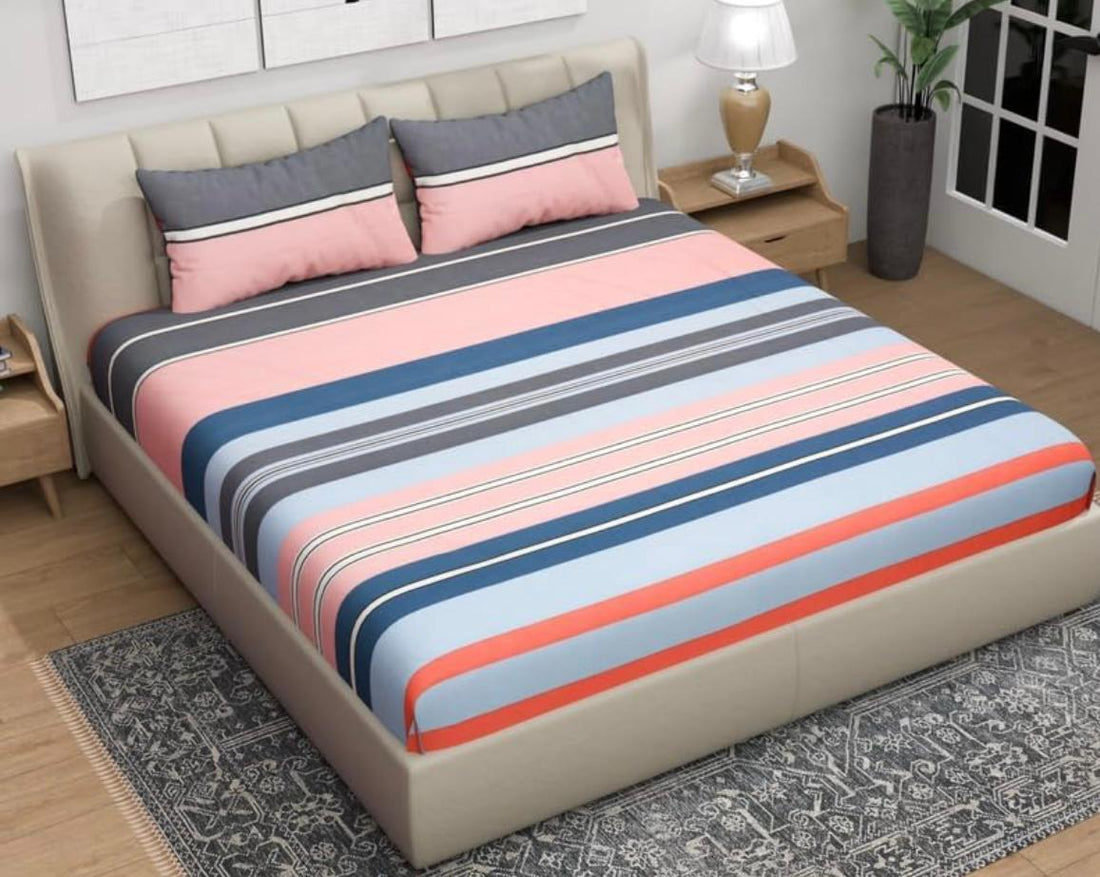Cotton designer elastic fitted bedsheet with 2 pillow cover