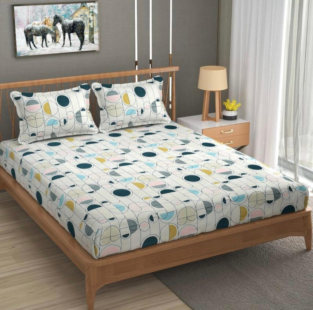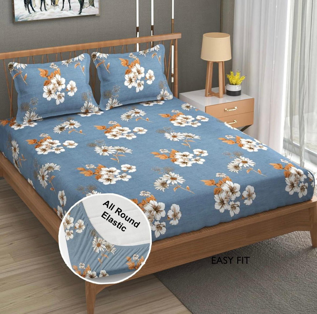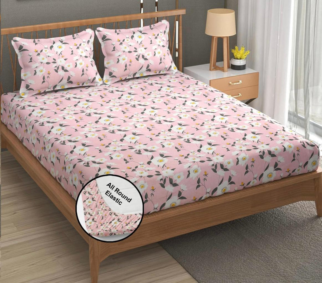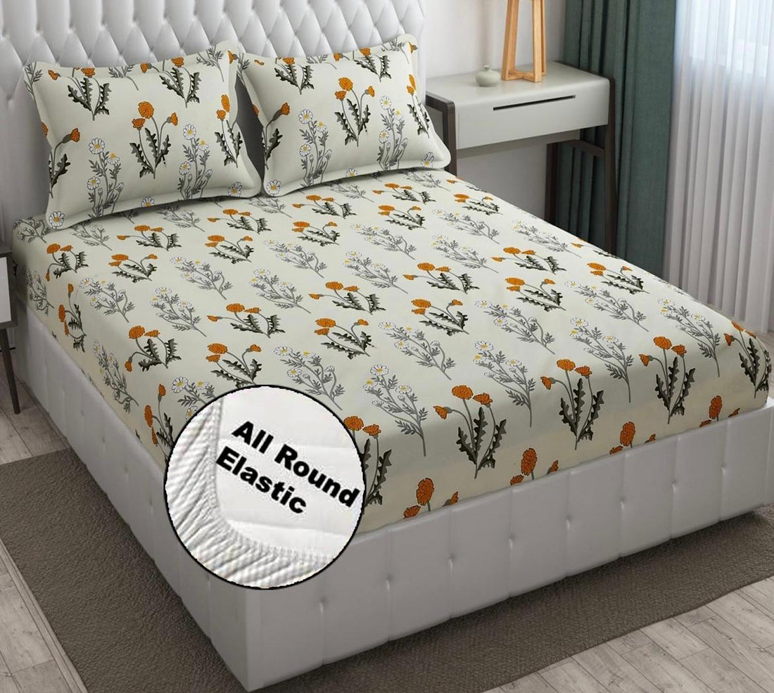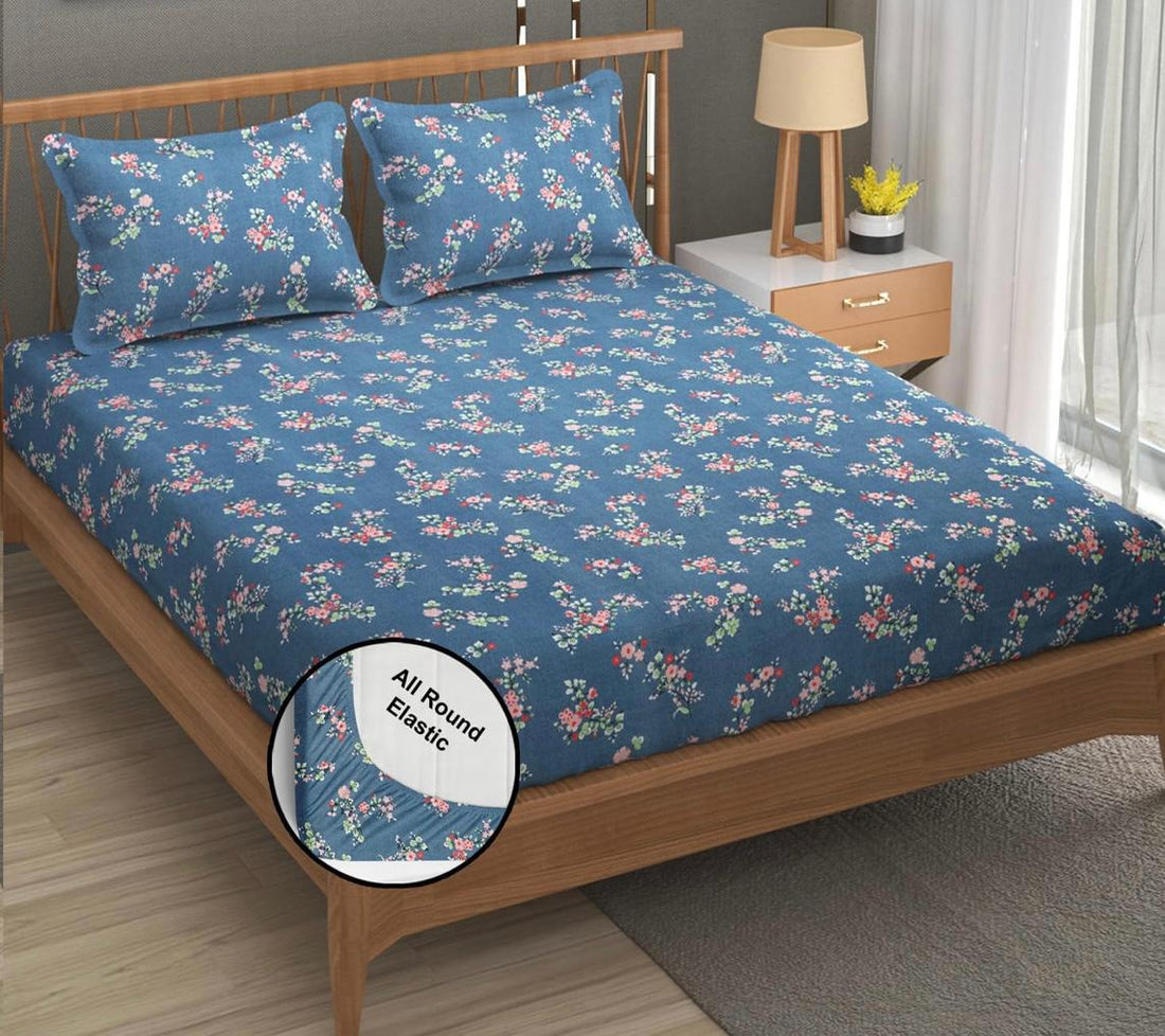 Cotton designer elastic fitted bedsheet with 2 pillow cover