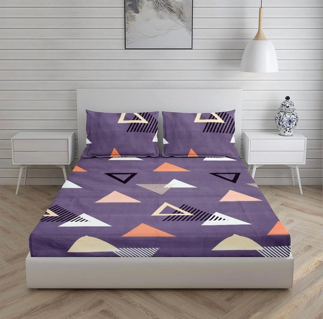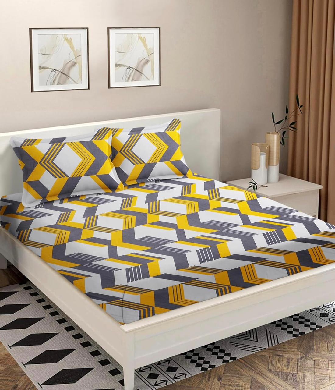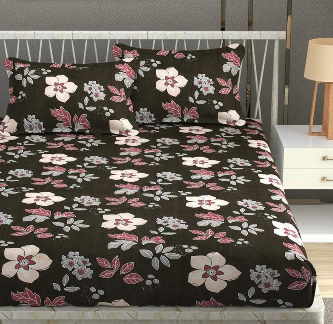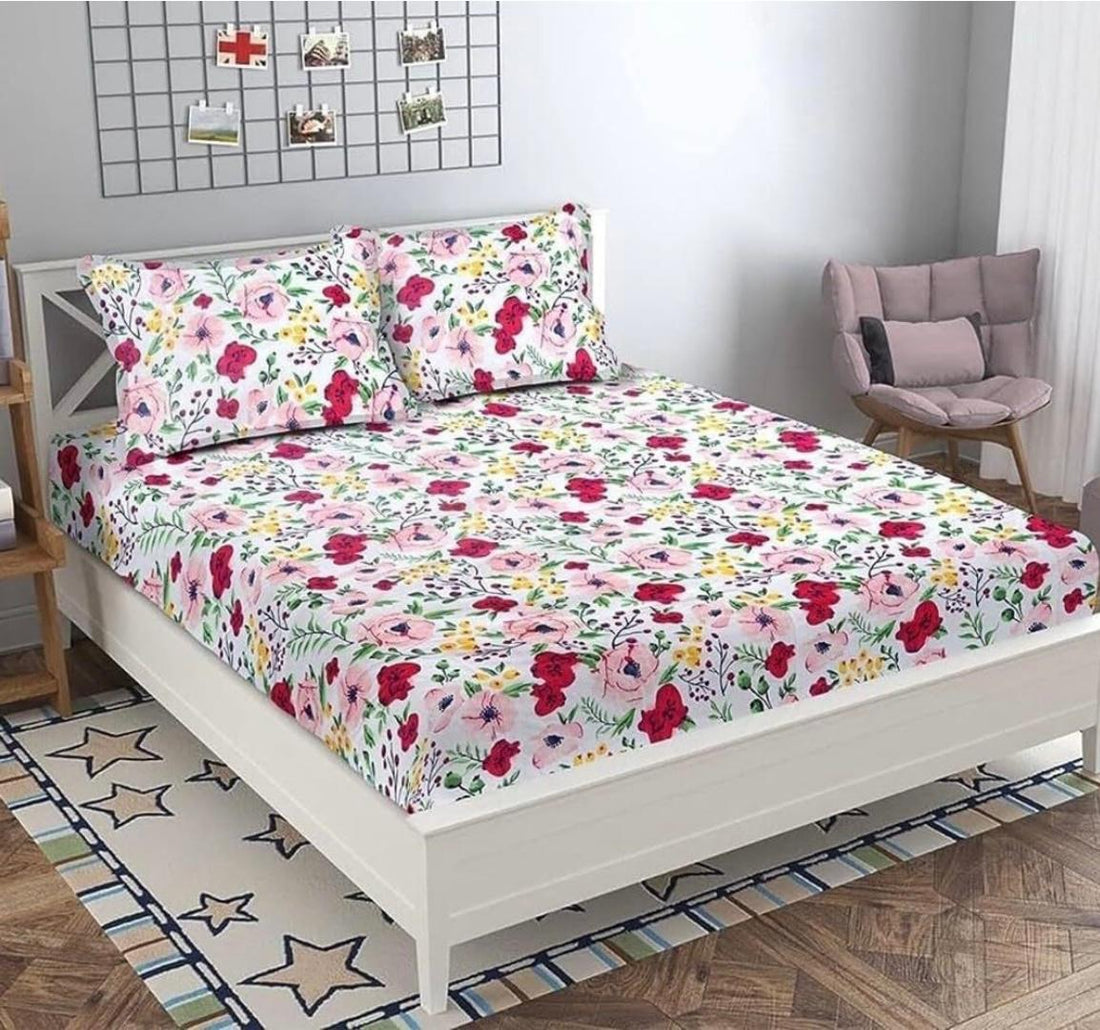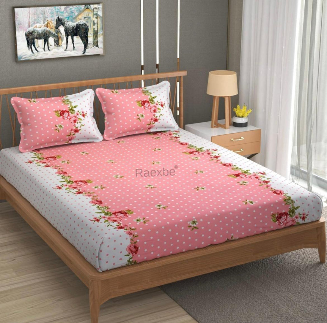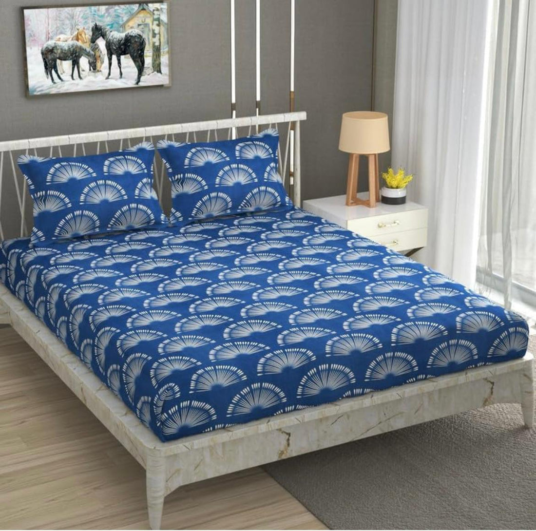 Cotton designer elastic fitted bedsheet with 2 pillow cover