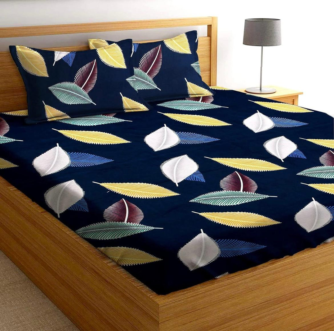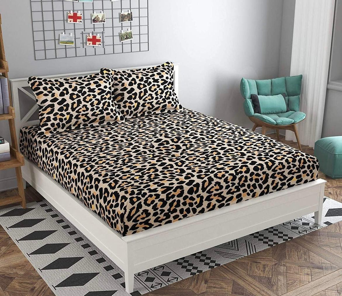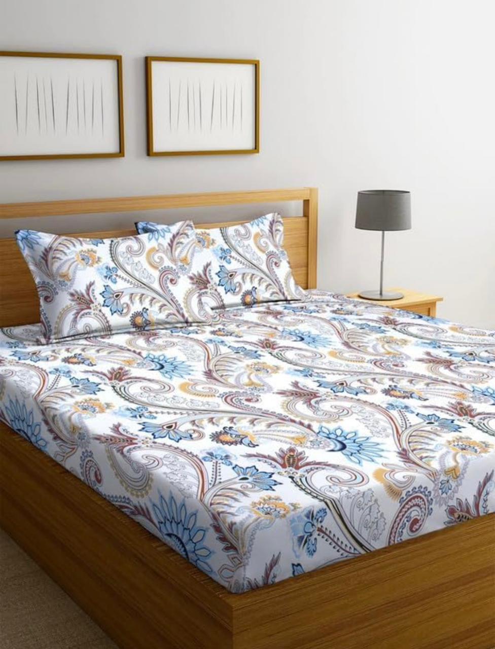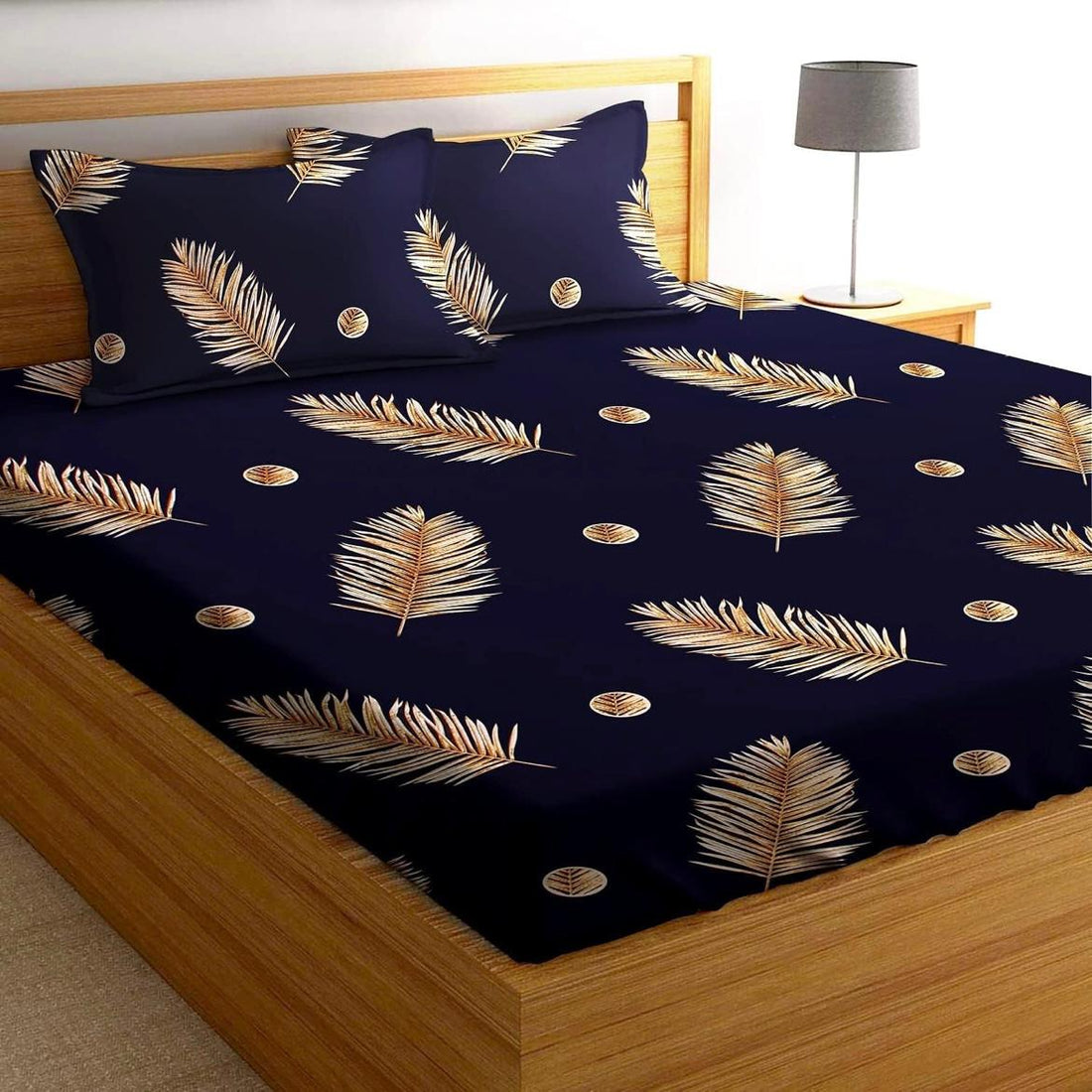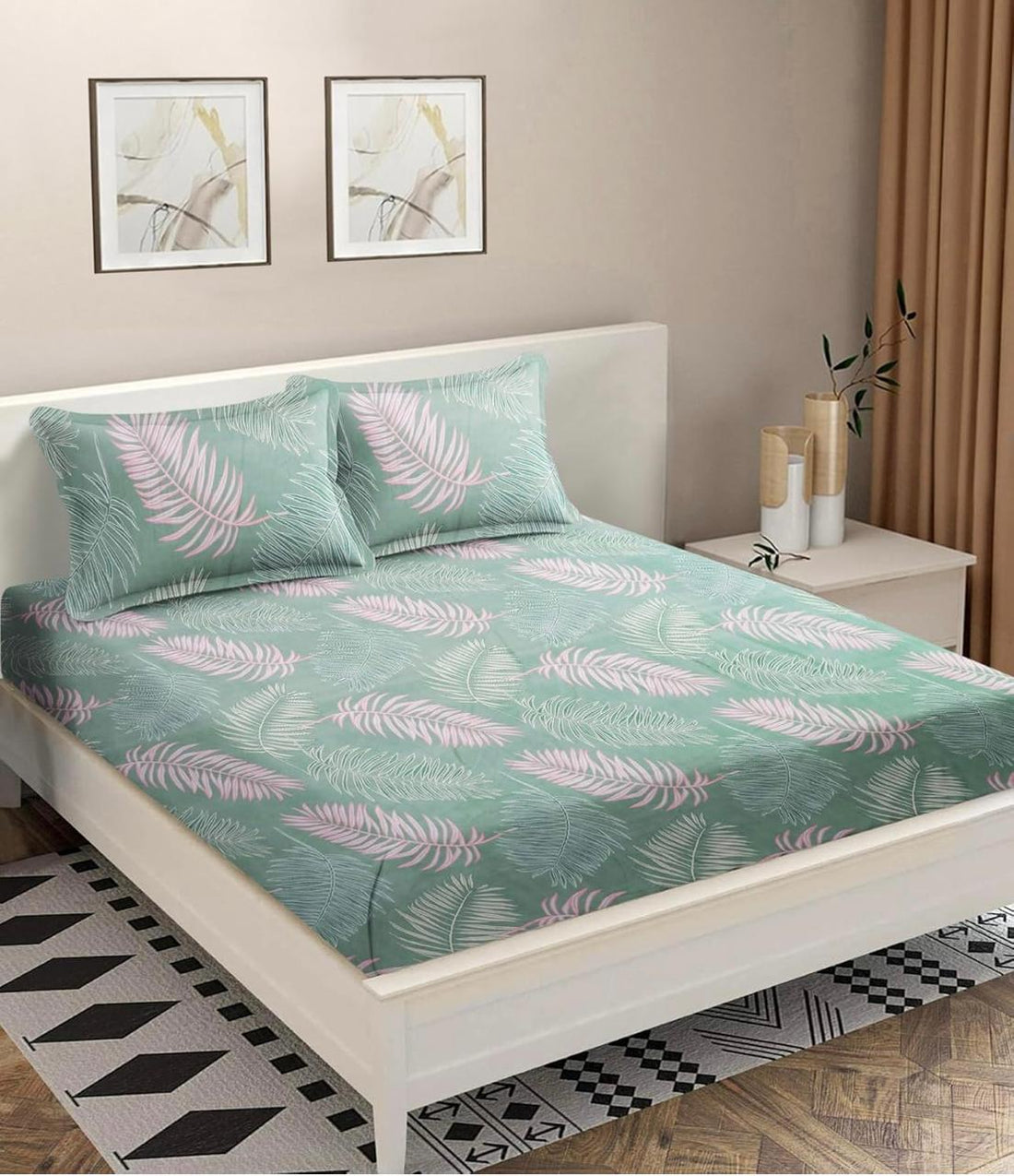 Cotton designer elastic fitted bedsheet with 2 pillow cover