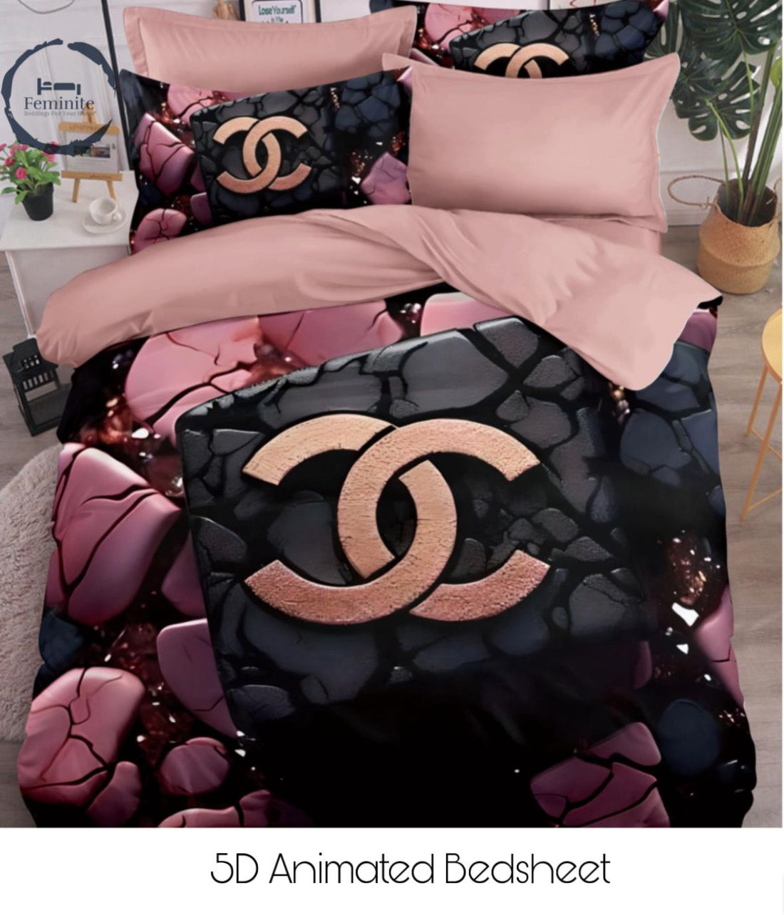 Cotton Satin silk logo branding designer bedsheet with 2 pillow cover