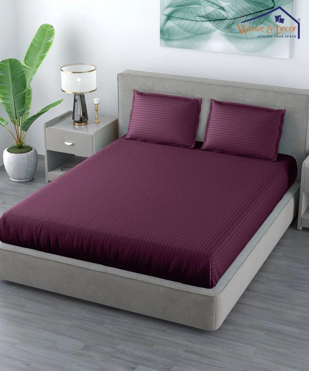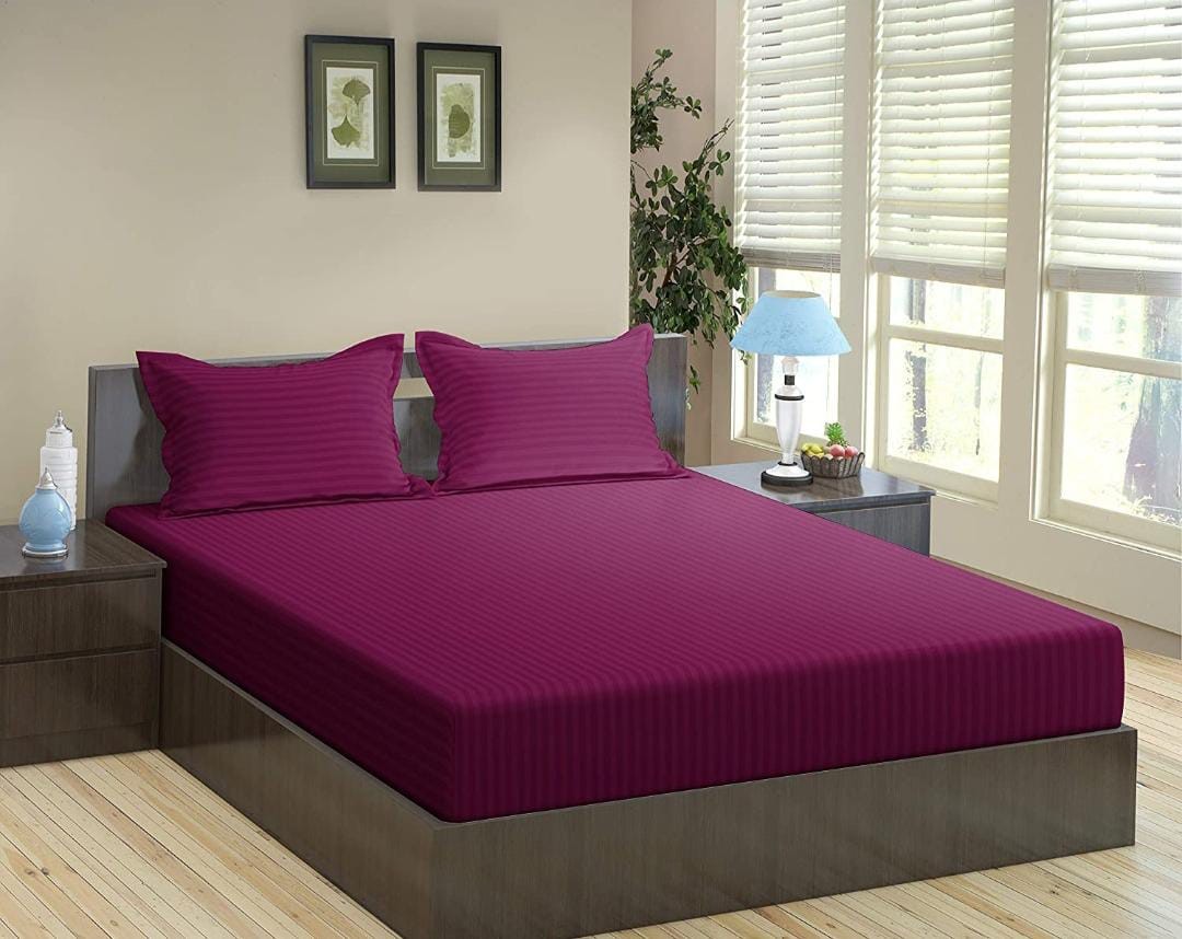 Cotton Satin Stripe Plain solid colors elastic fitted bedsheet with 2 pillow cover