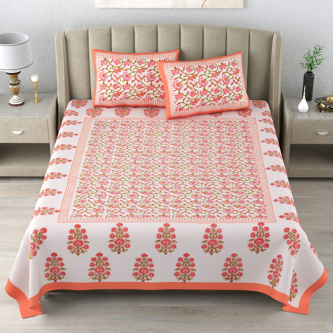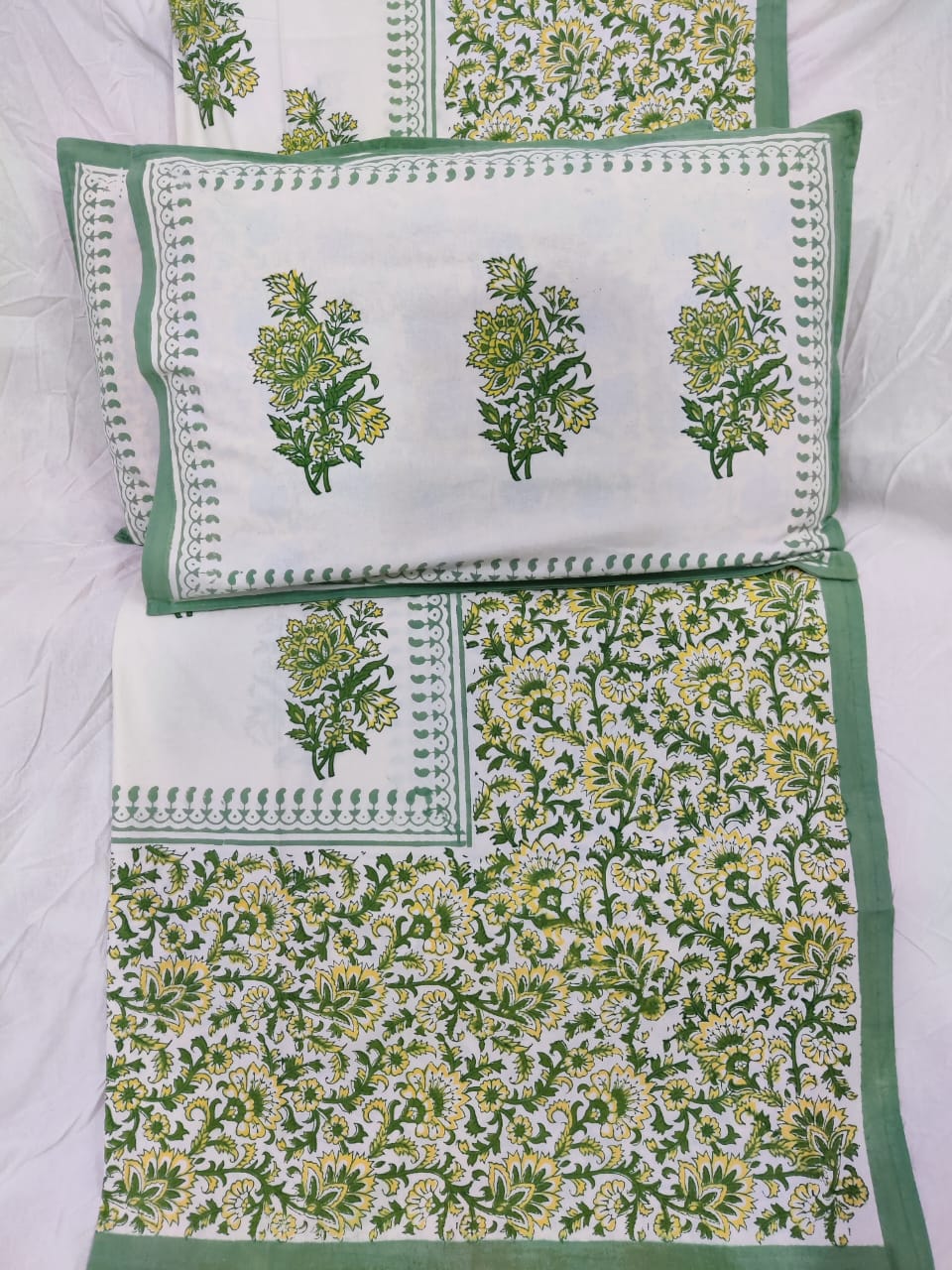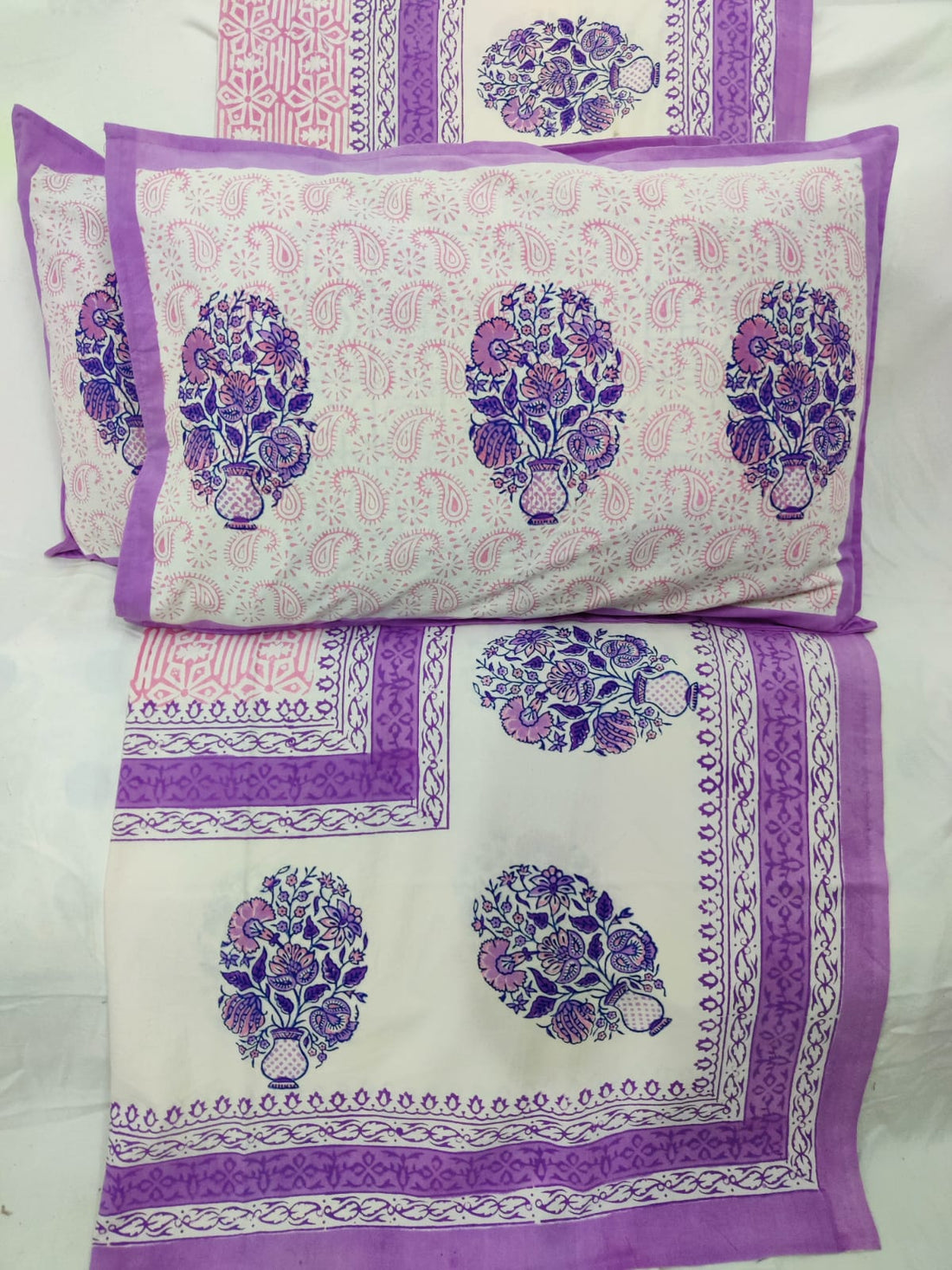100%Pure cotton hand block designer bedsheet with 2 pillow cover