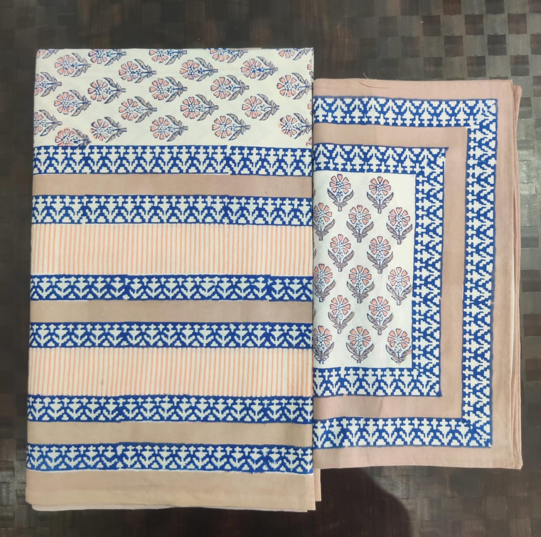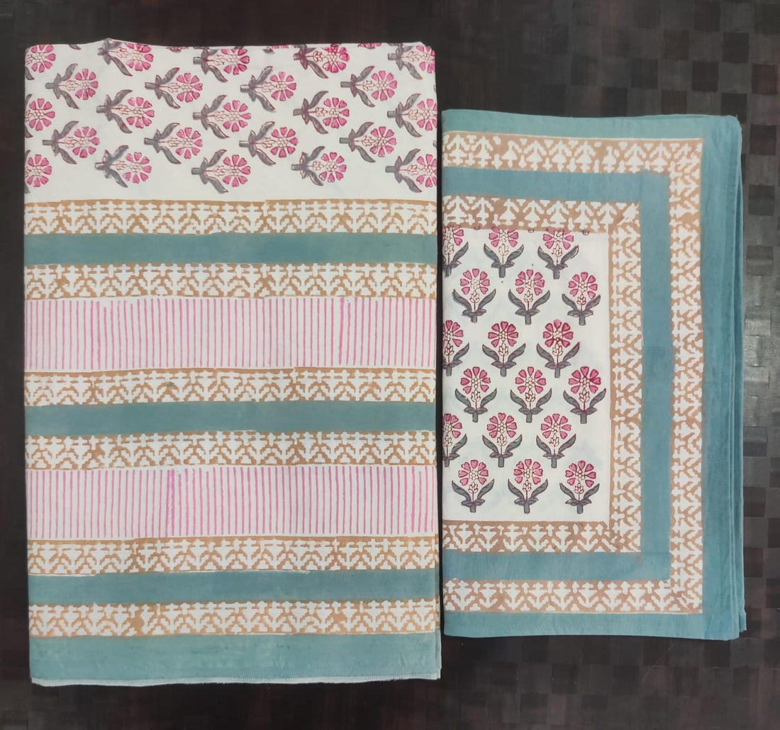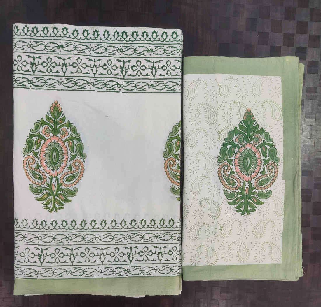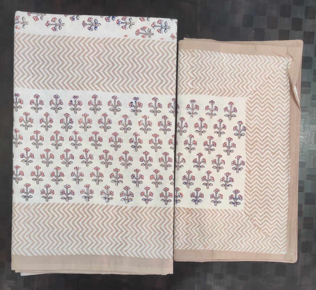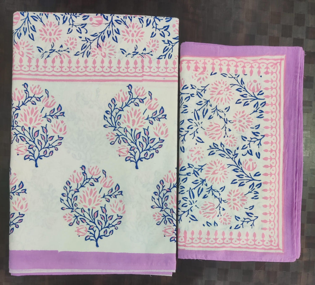 Pure cotton hand block designer bedsheet with 2 pillow cover