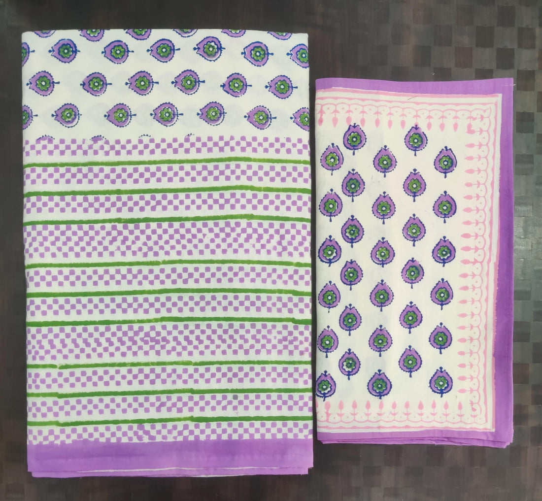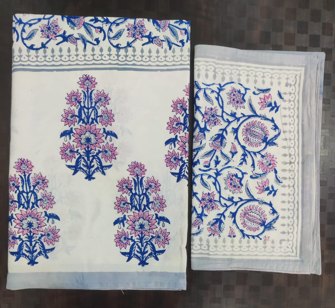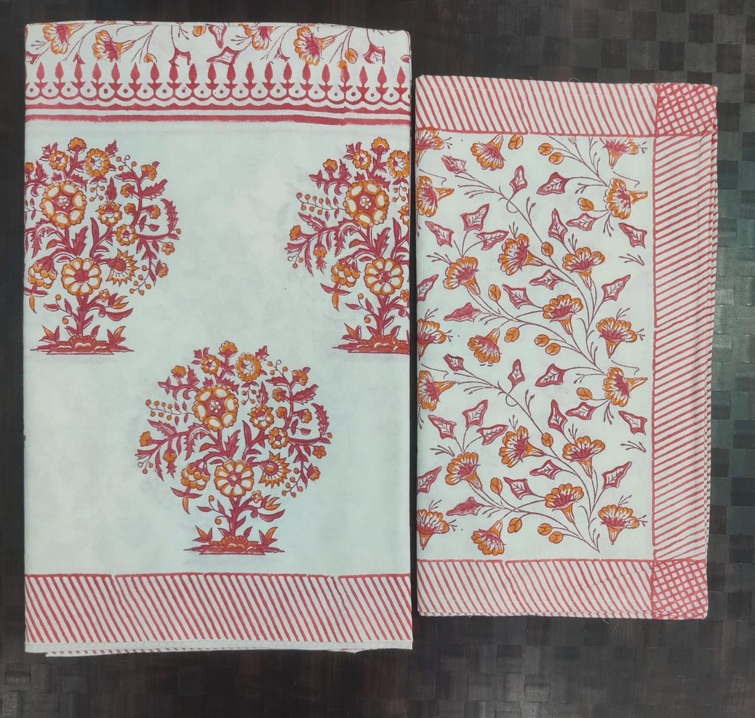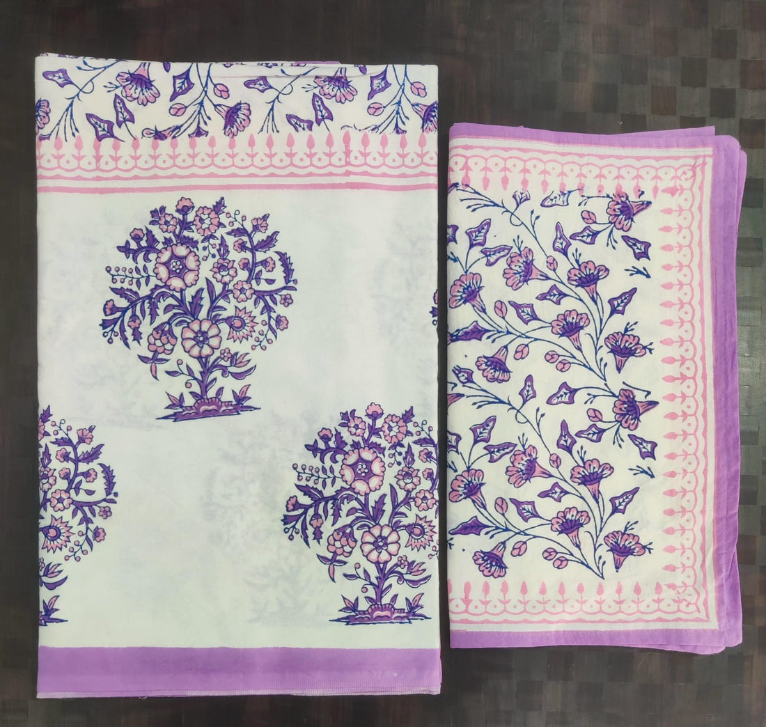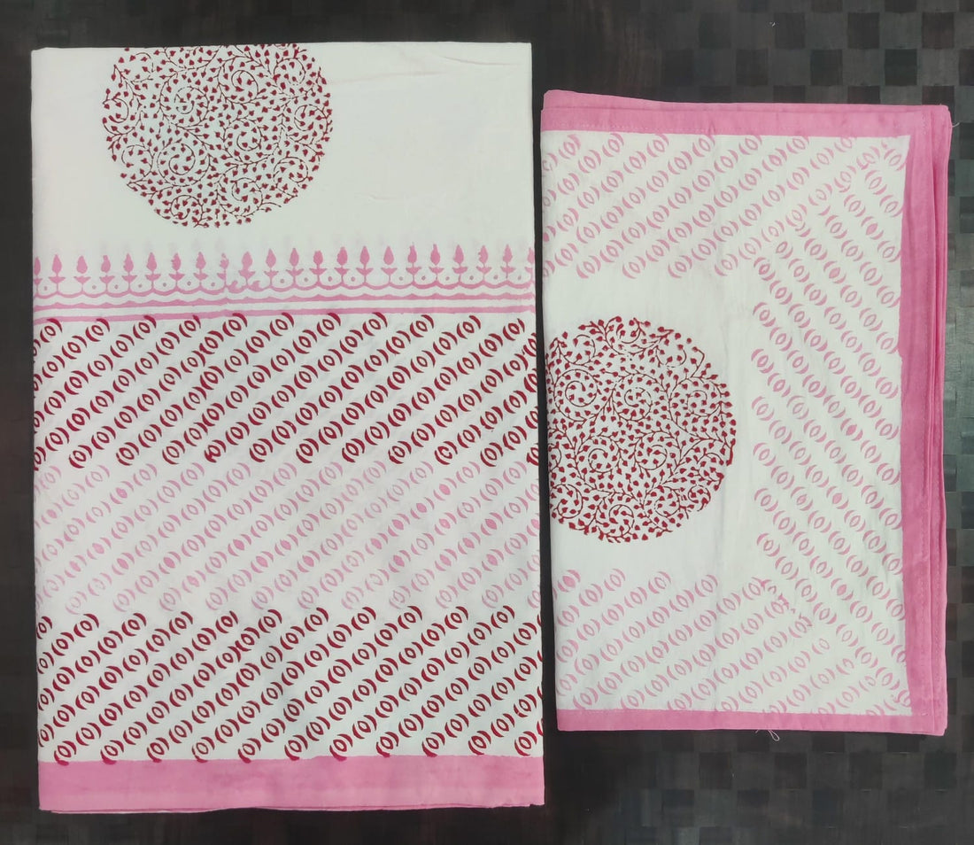 Pure cotton hand block designer bedsheet with 2 pillow cover
