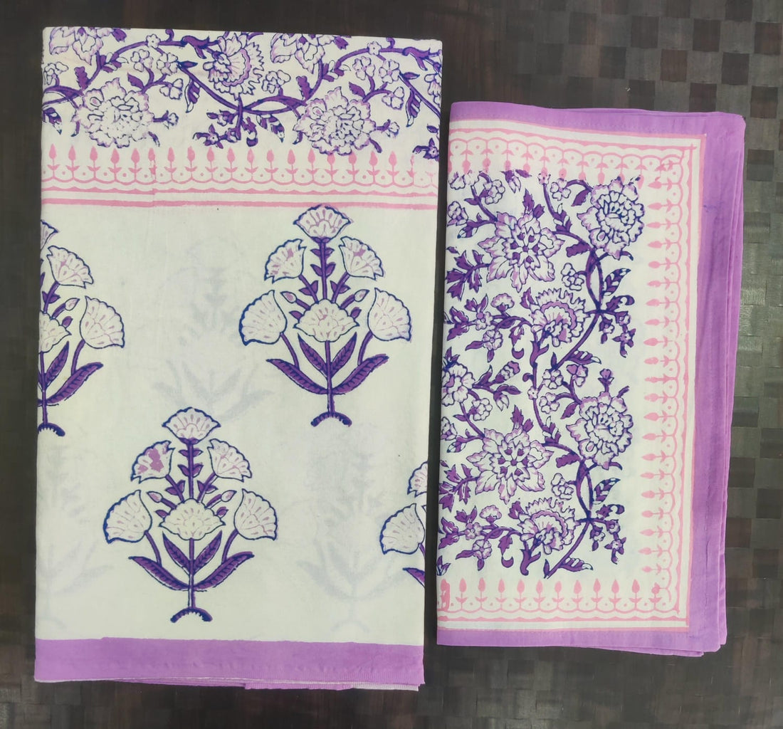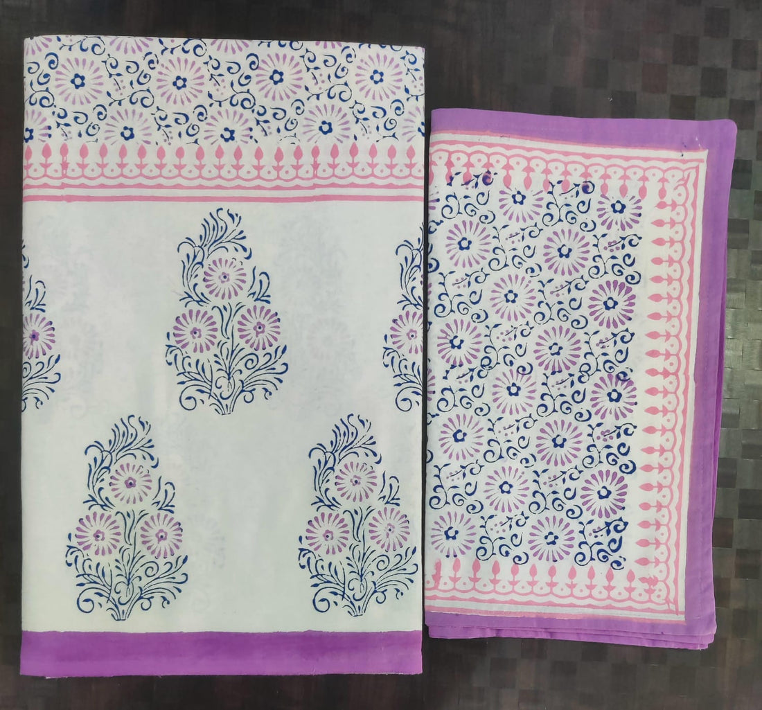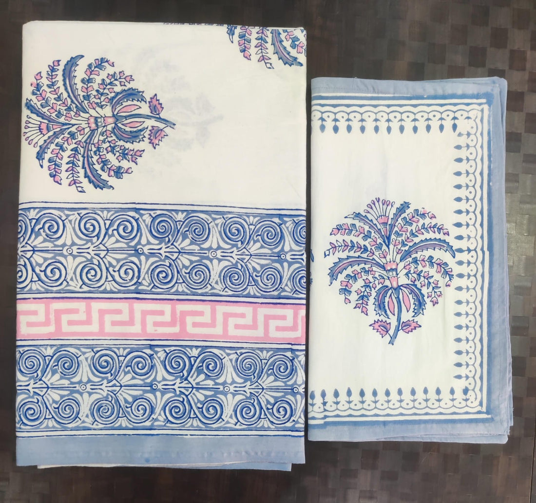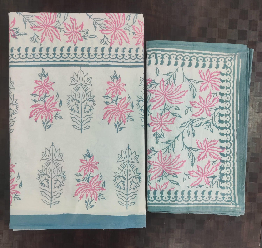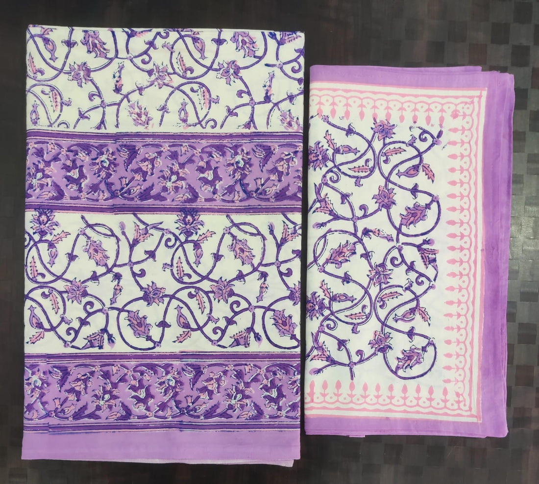 Pure cotton hand block designer bedsheet with 2 pillow cover
