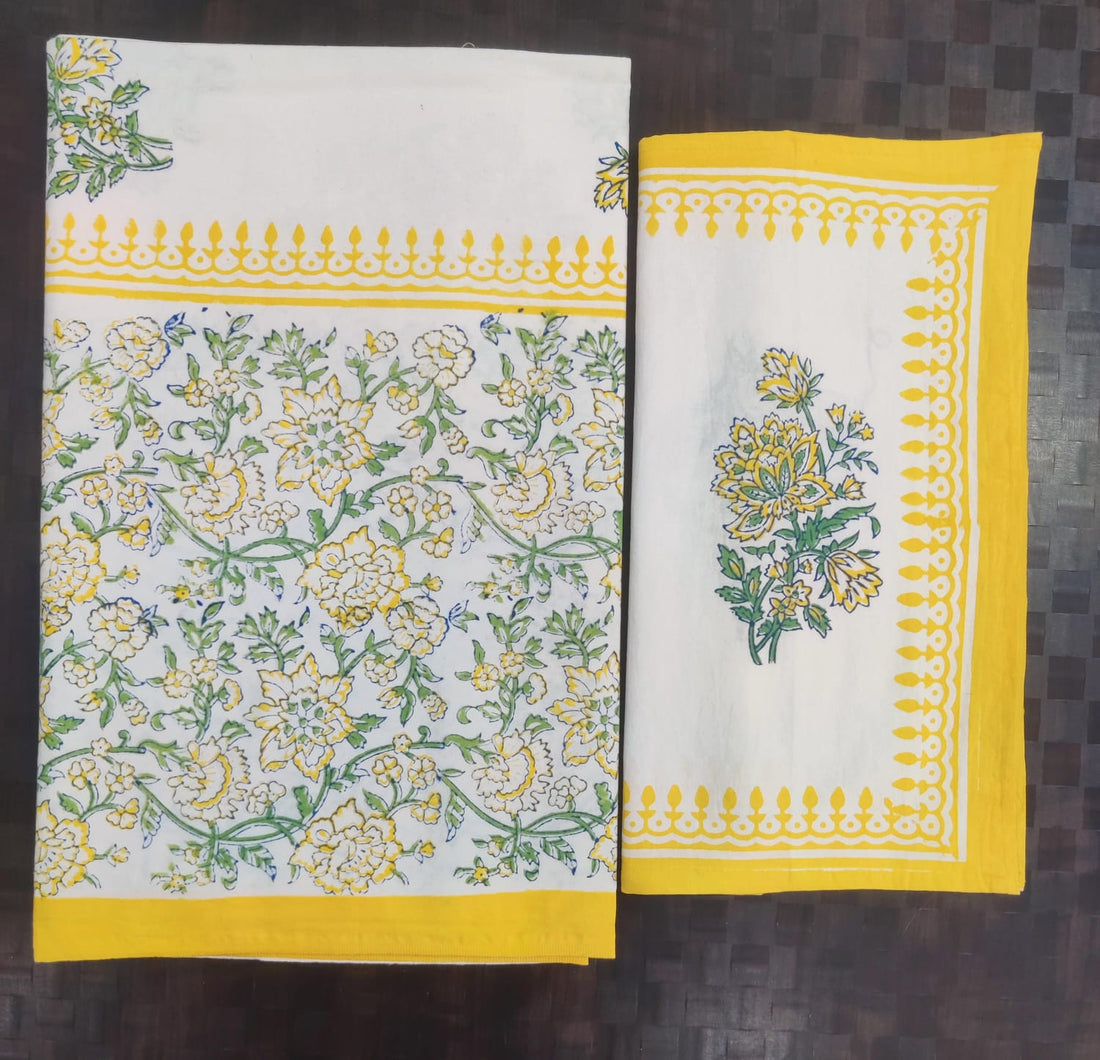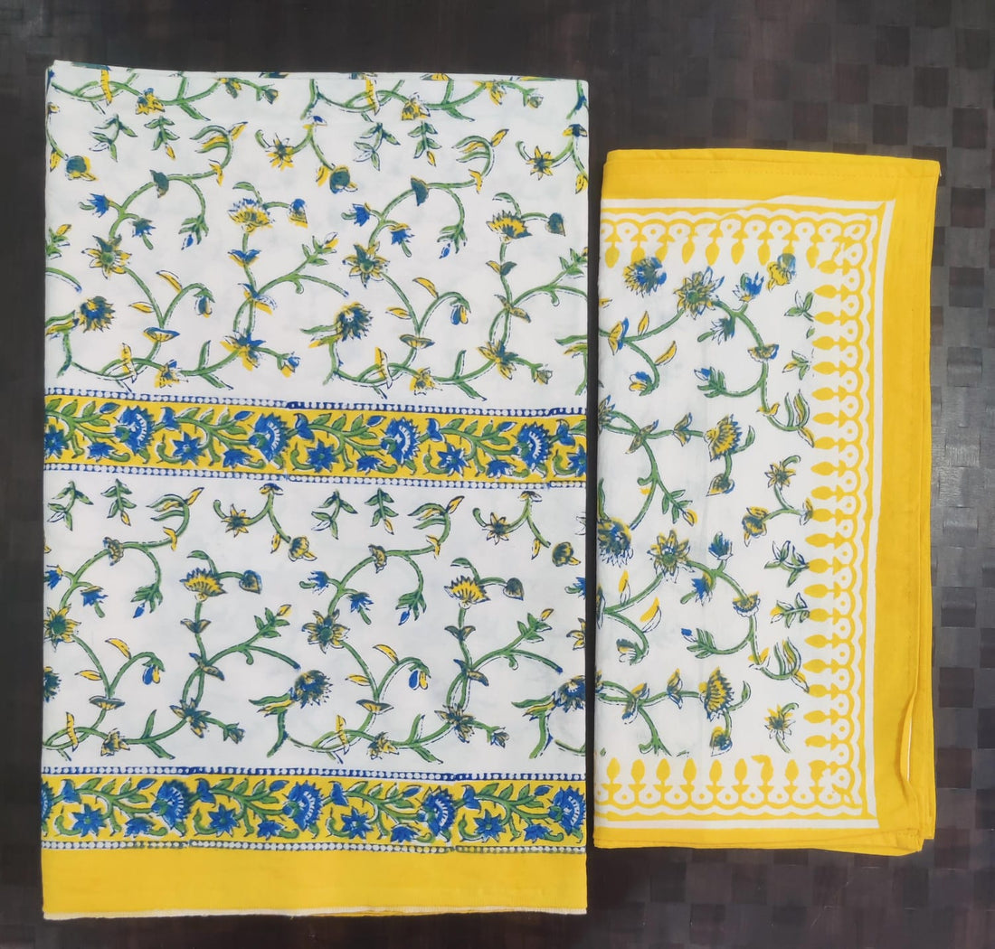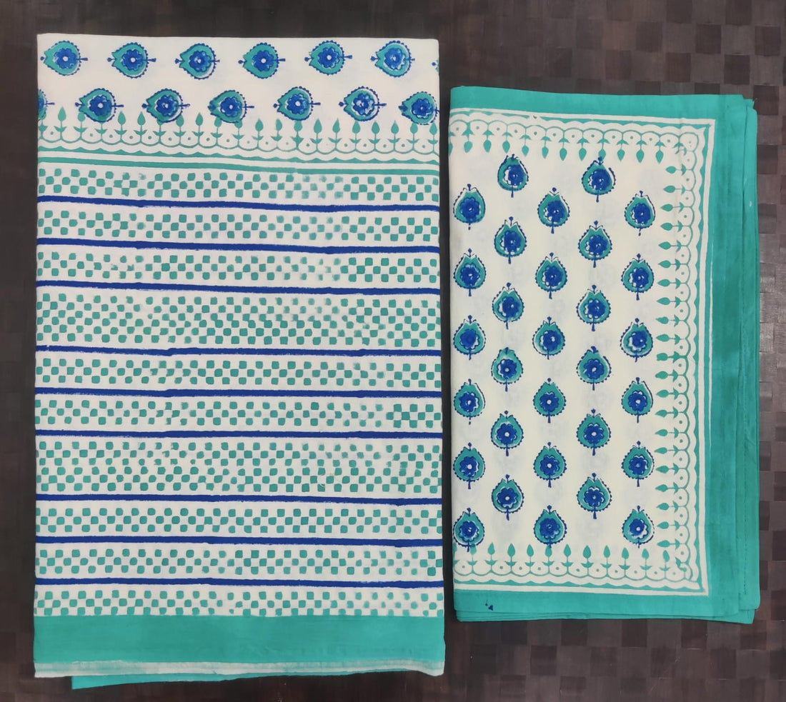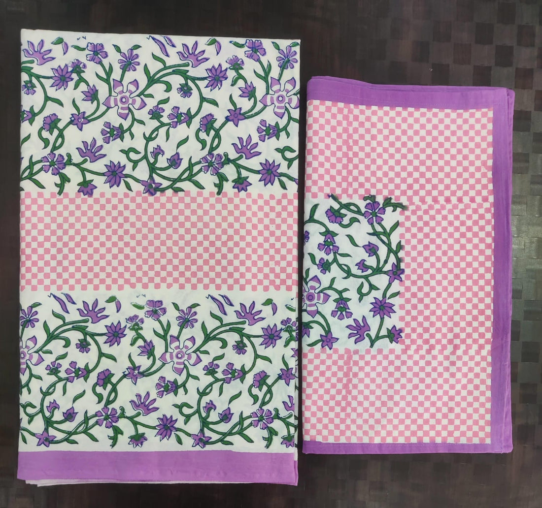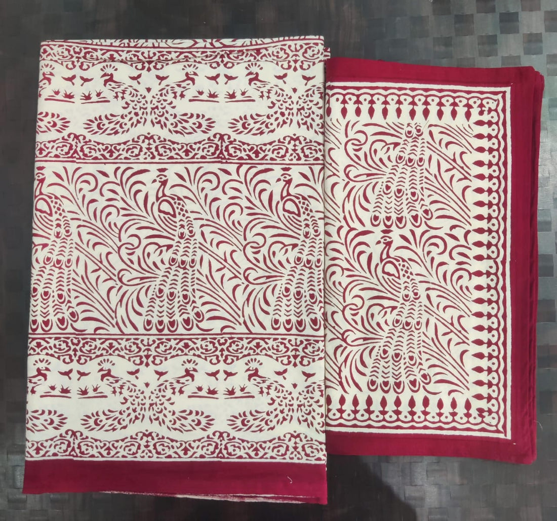 Pure cotton hand block designer bedsheet with 2 pillow cover