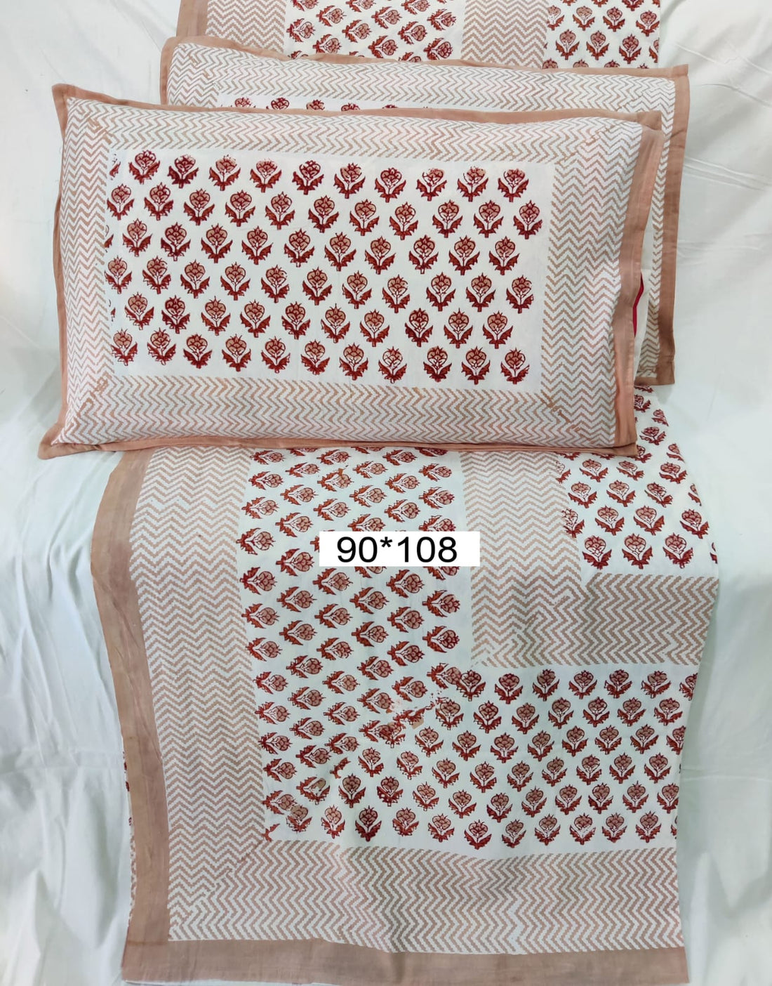 100%Pure cotton hand block designer bedsheet with 2 pillow cover