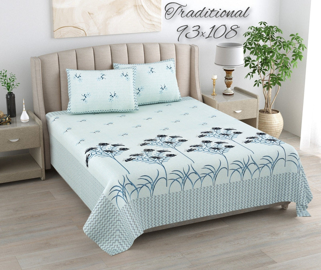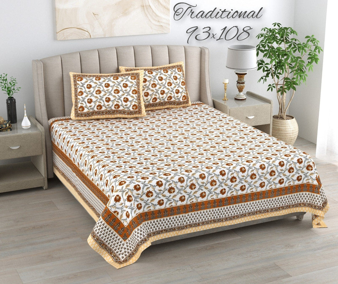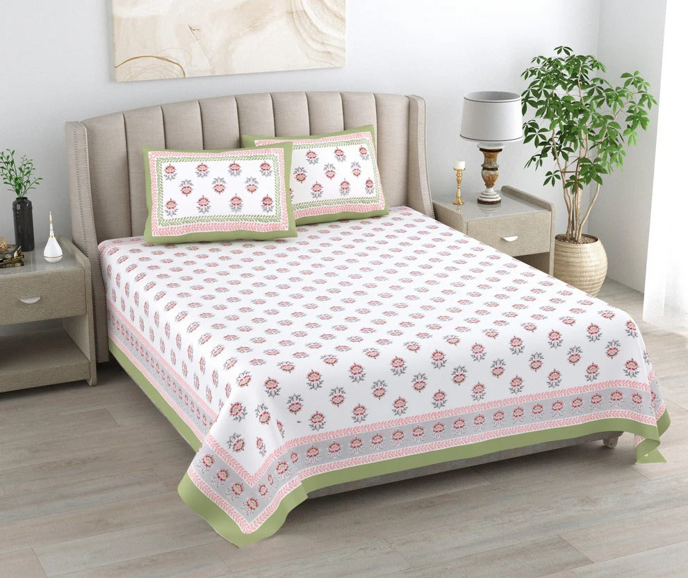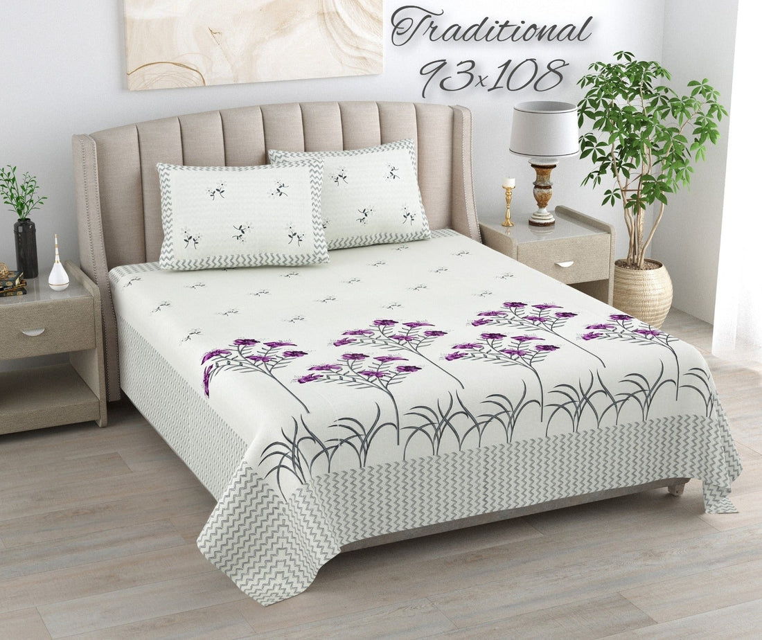 100%pure cotton traditional design bedsheet with 2 pillow cover