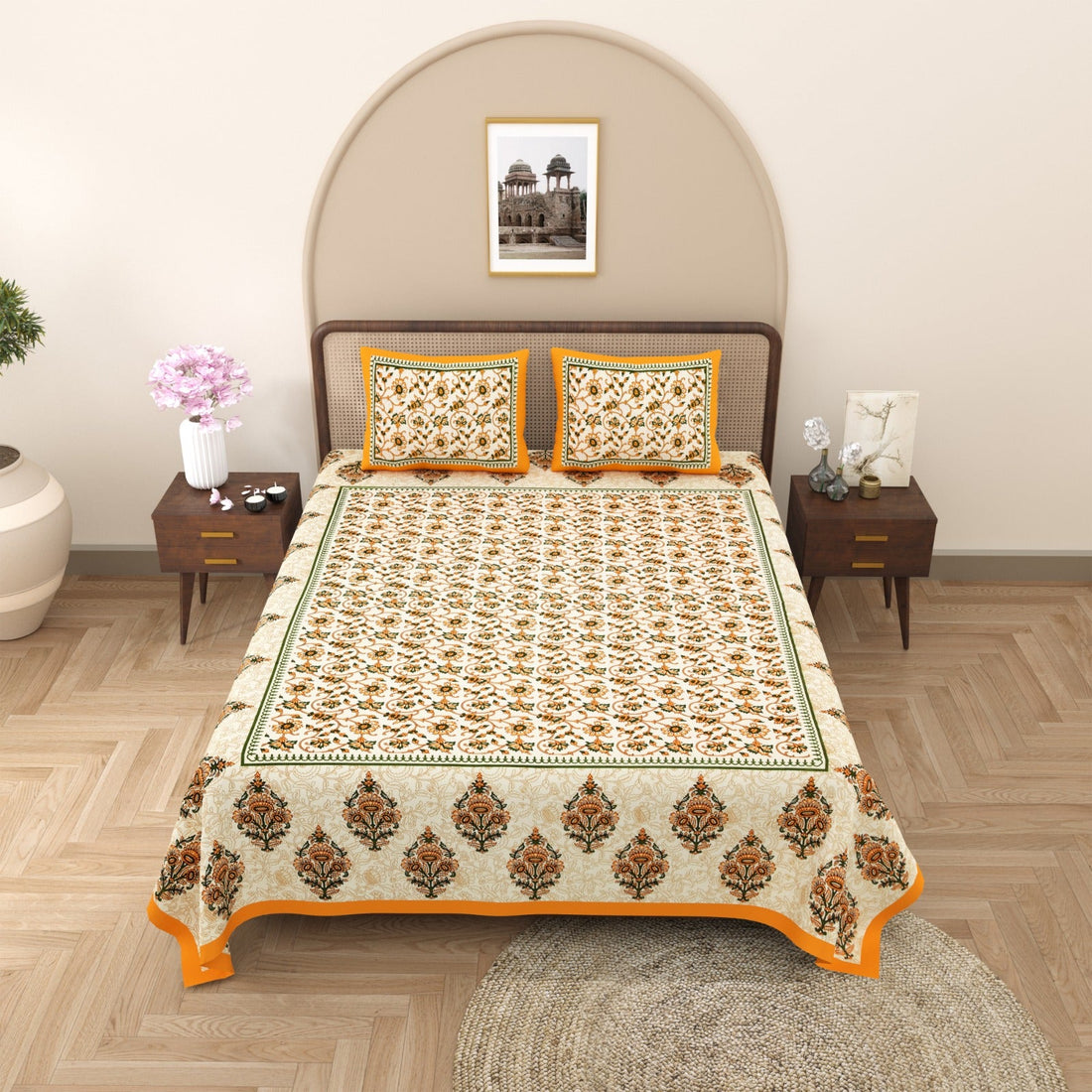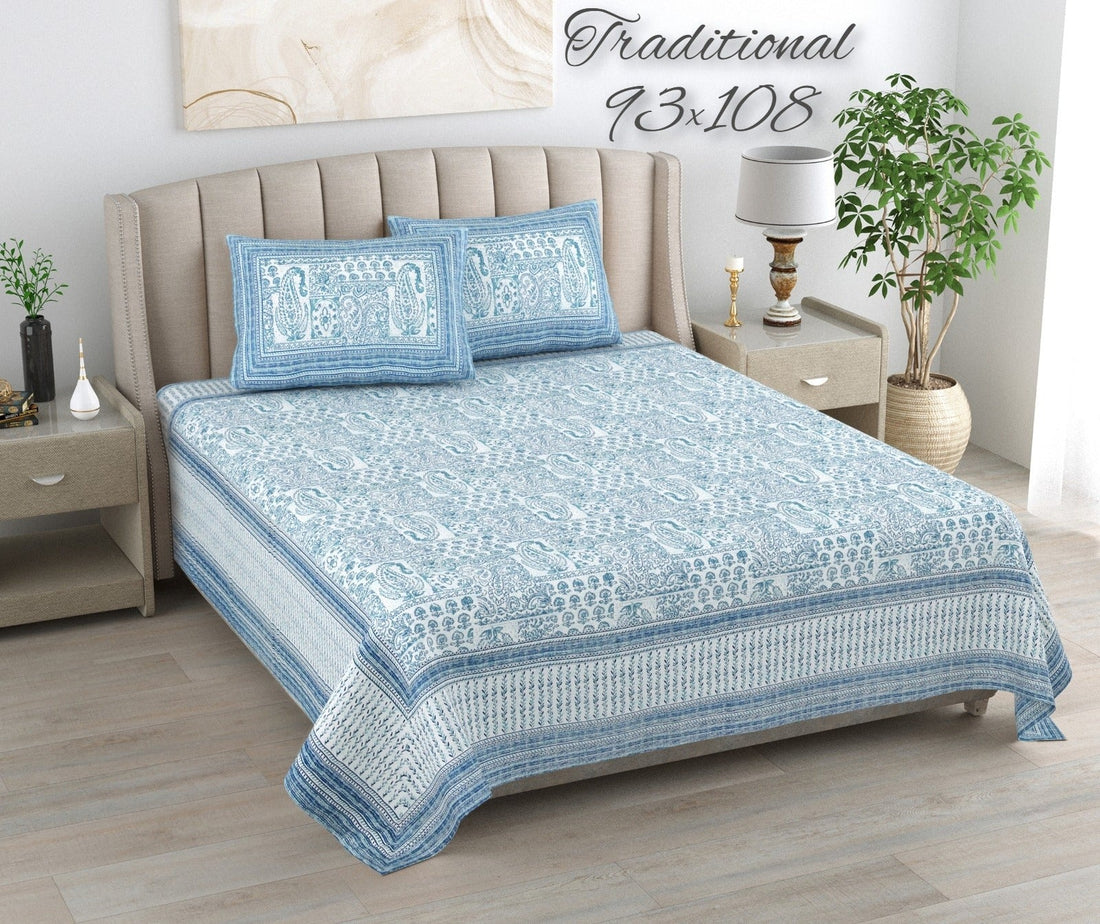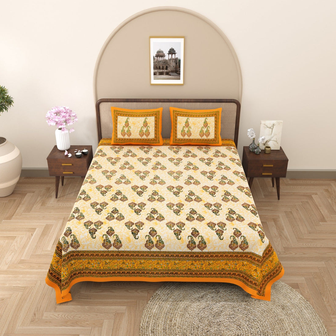100%pure cotton traditional design bedsheet with 2 pillow cover