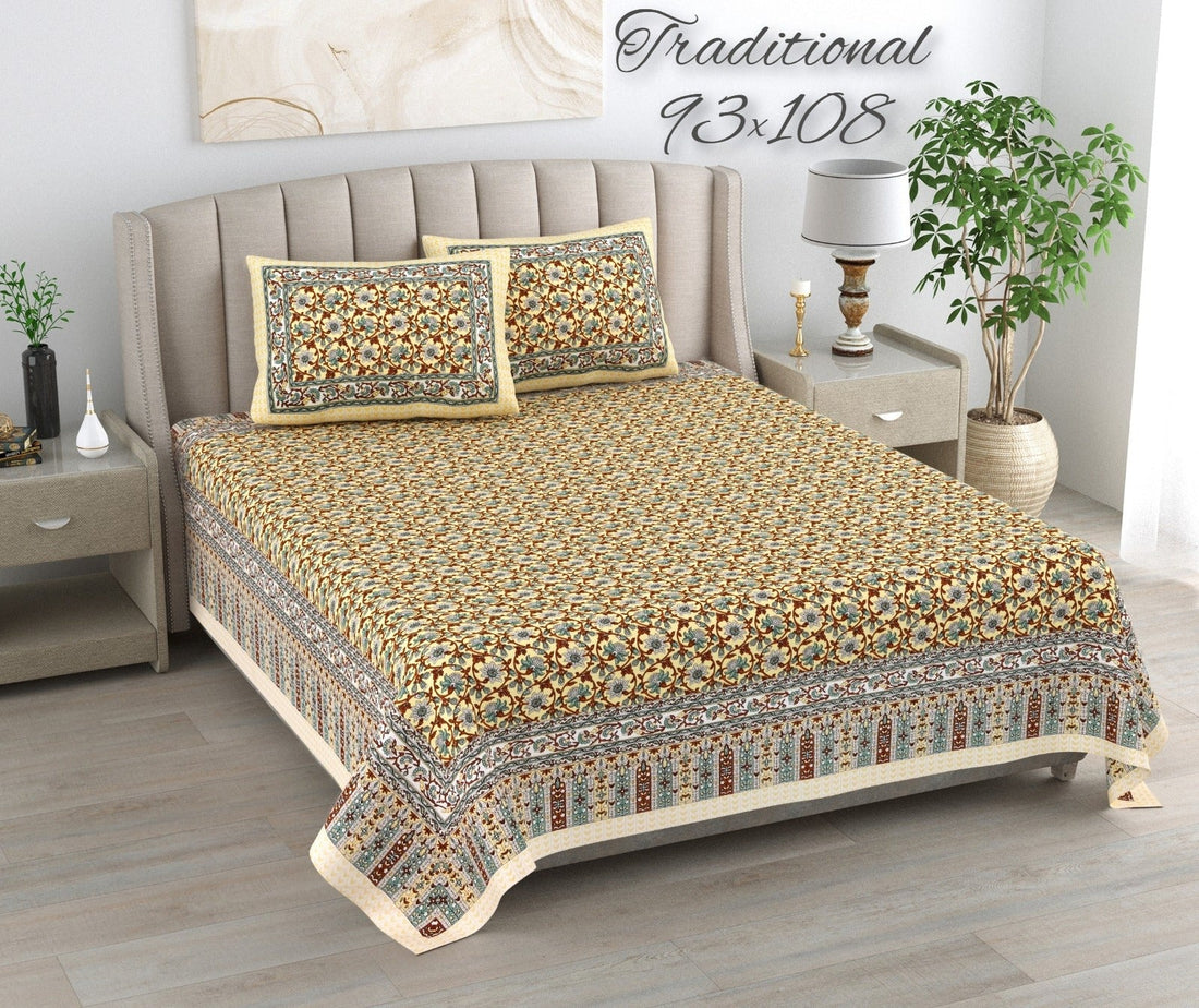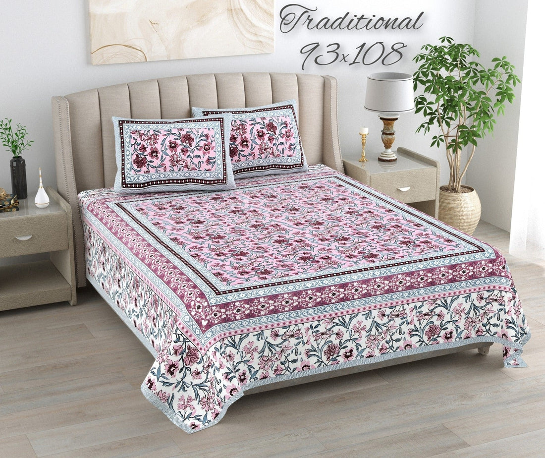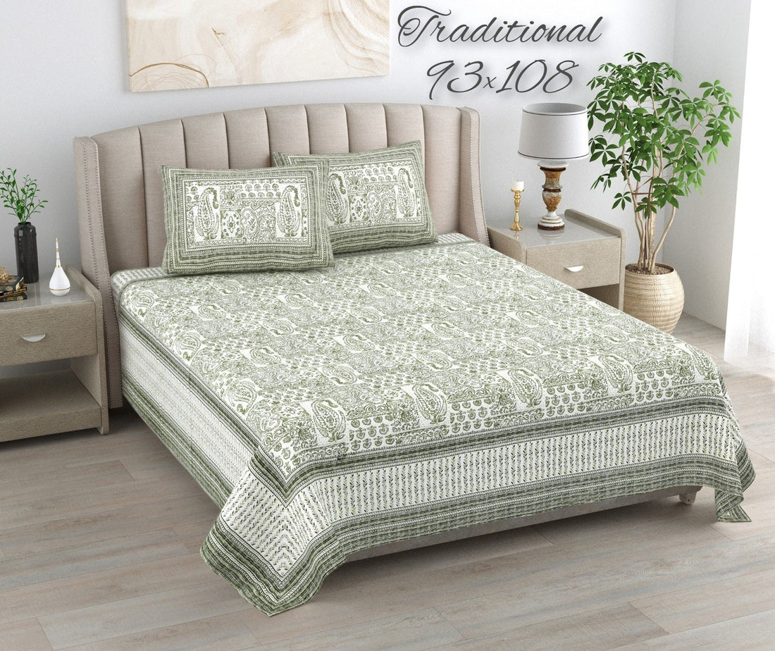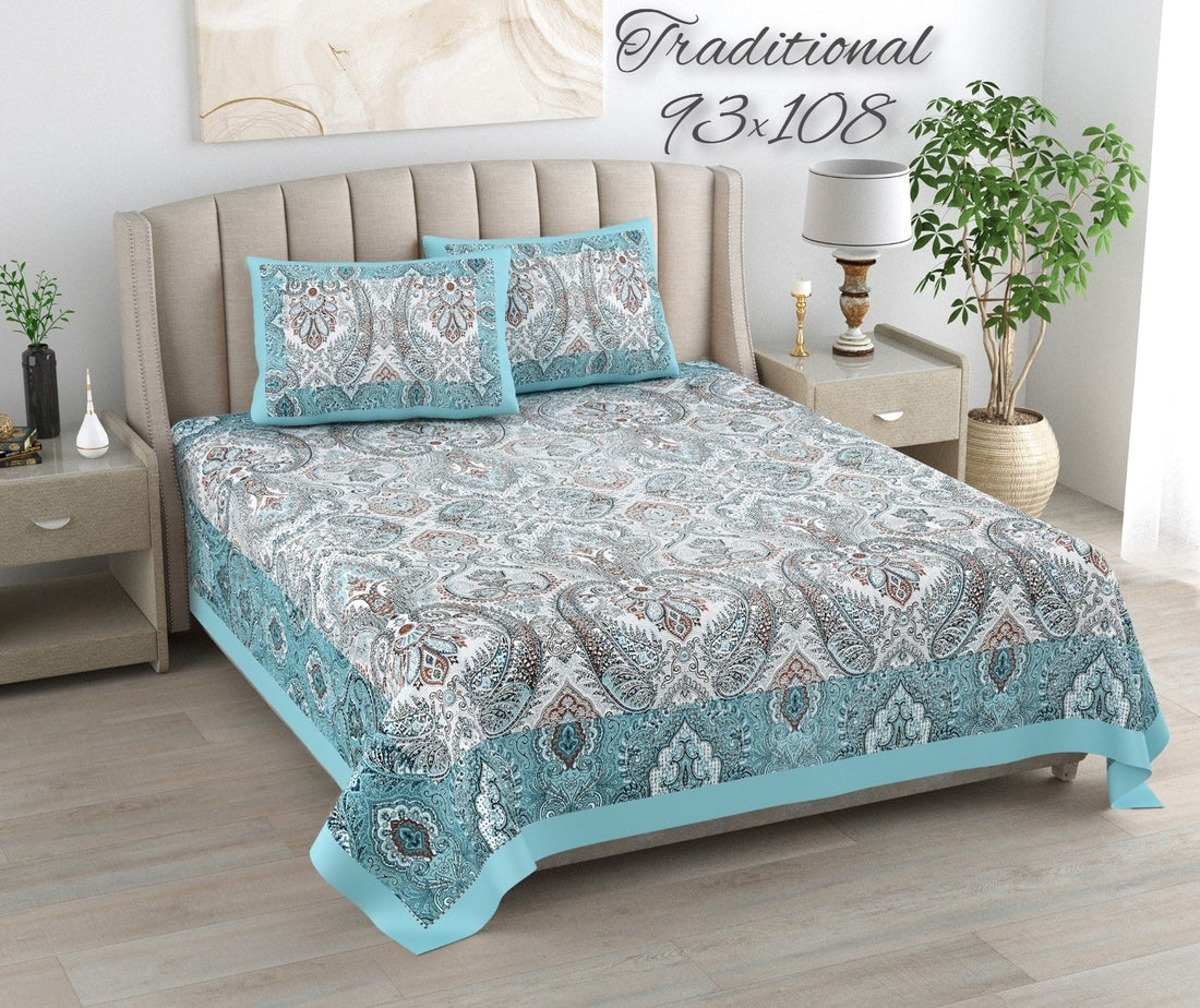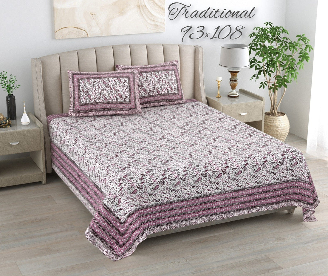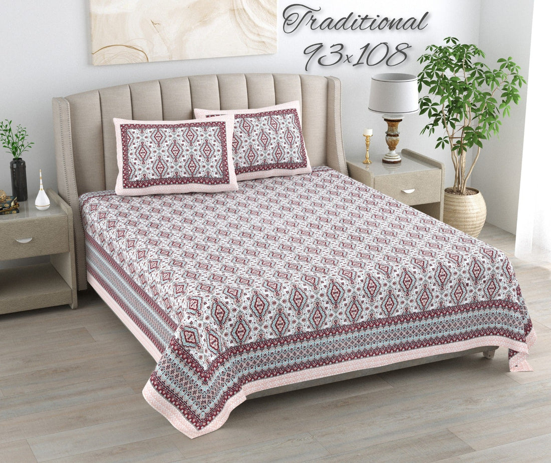 100%pure cotton traditional design bedsheet with 2 pillow cover
