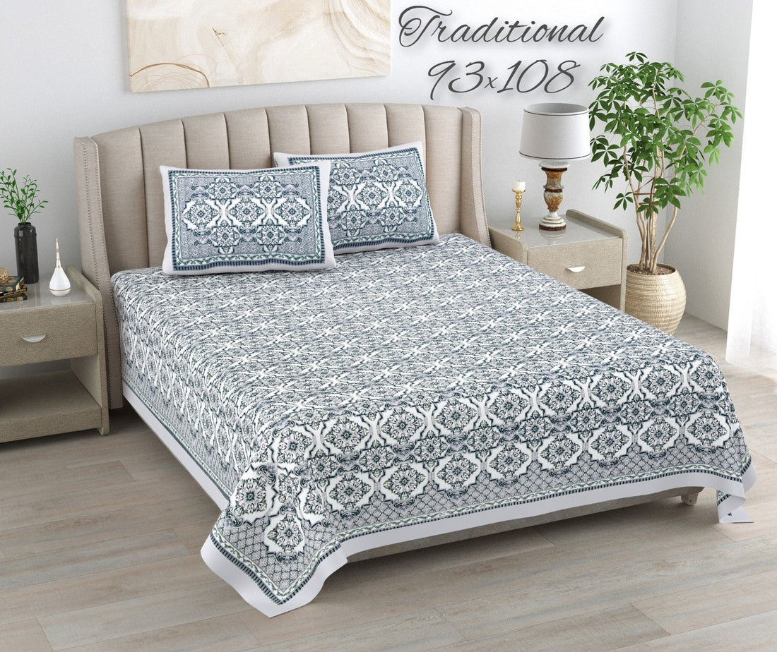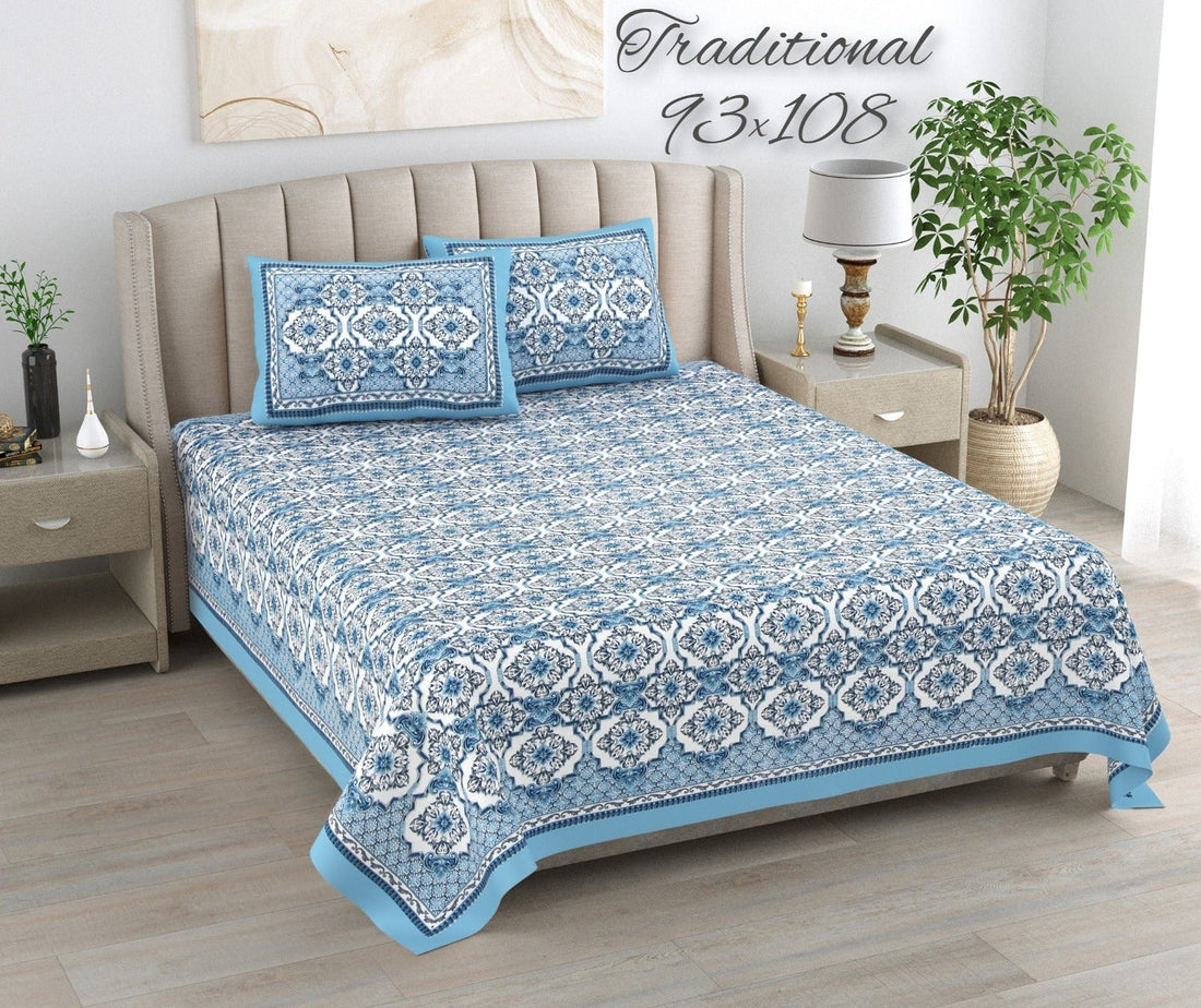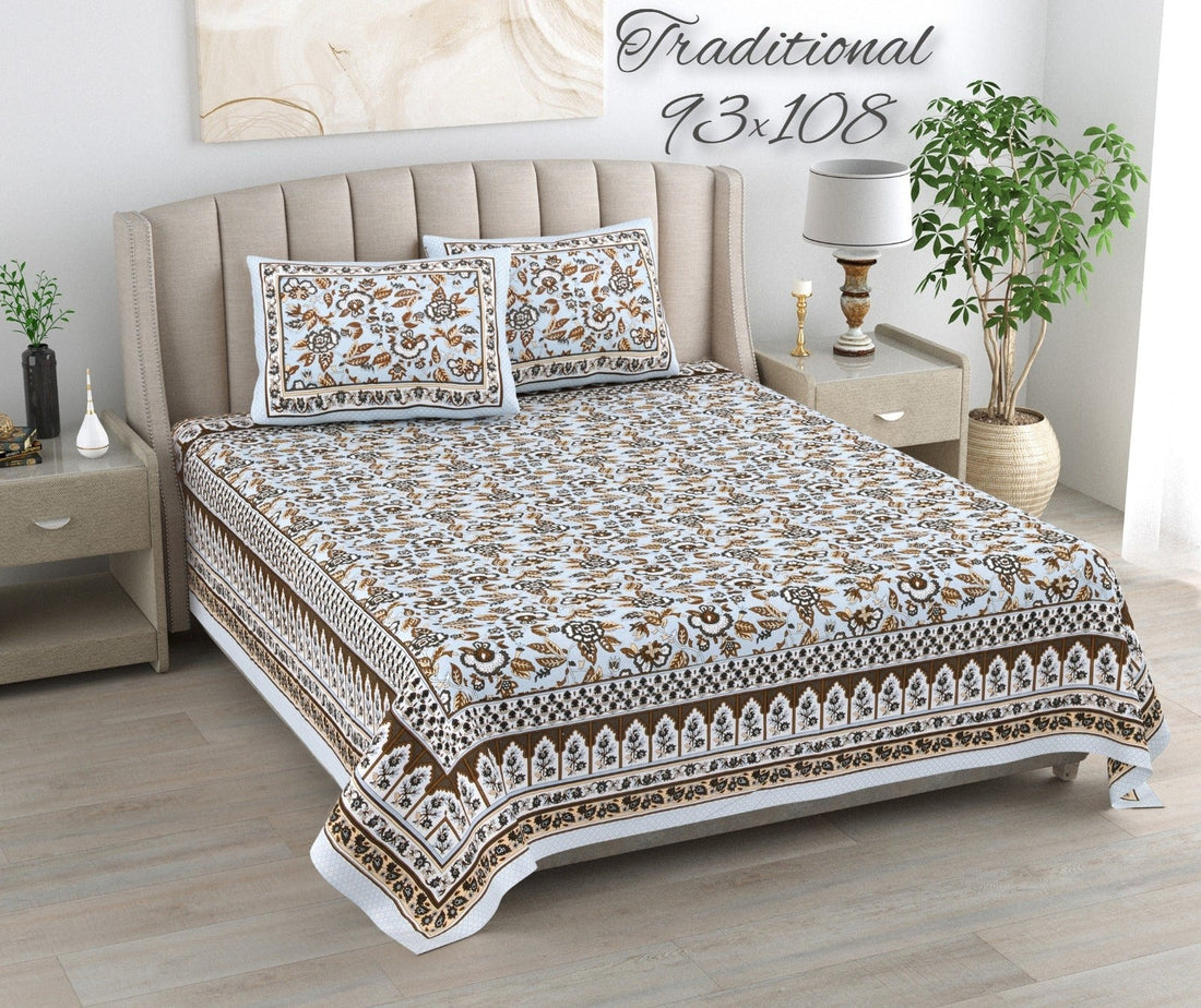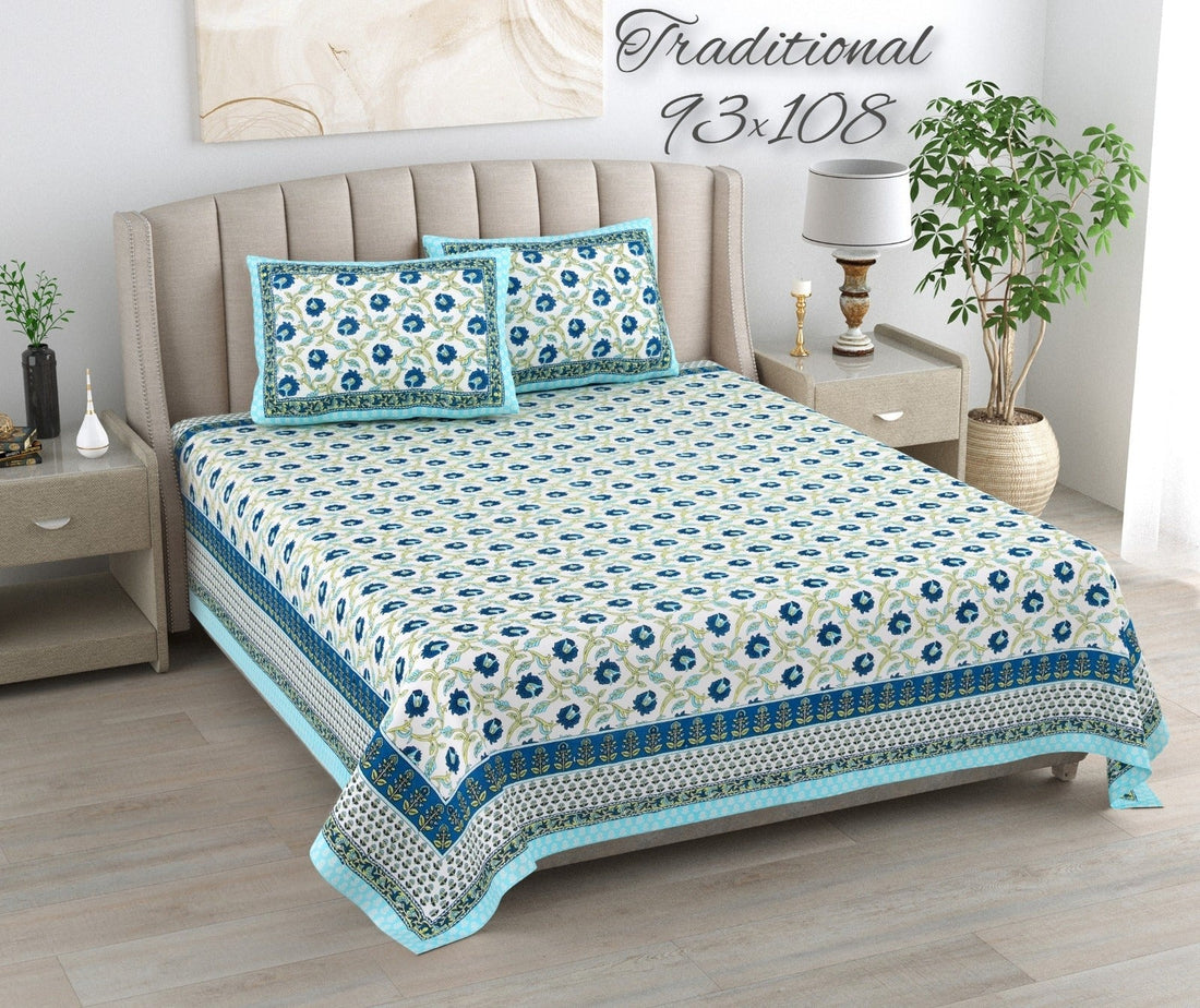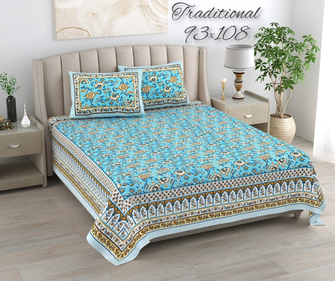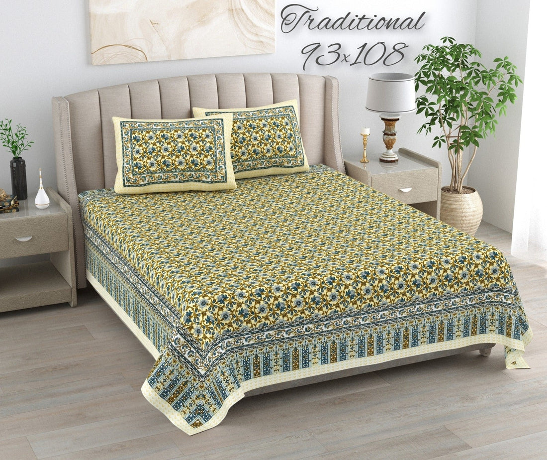 100%pure cotton traditional design bedsheet with 2 pillow cover