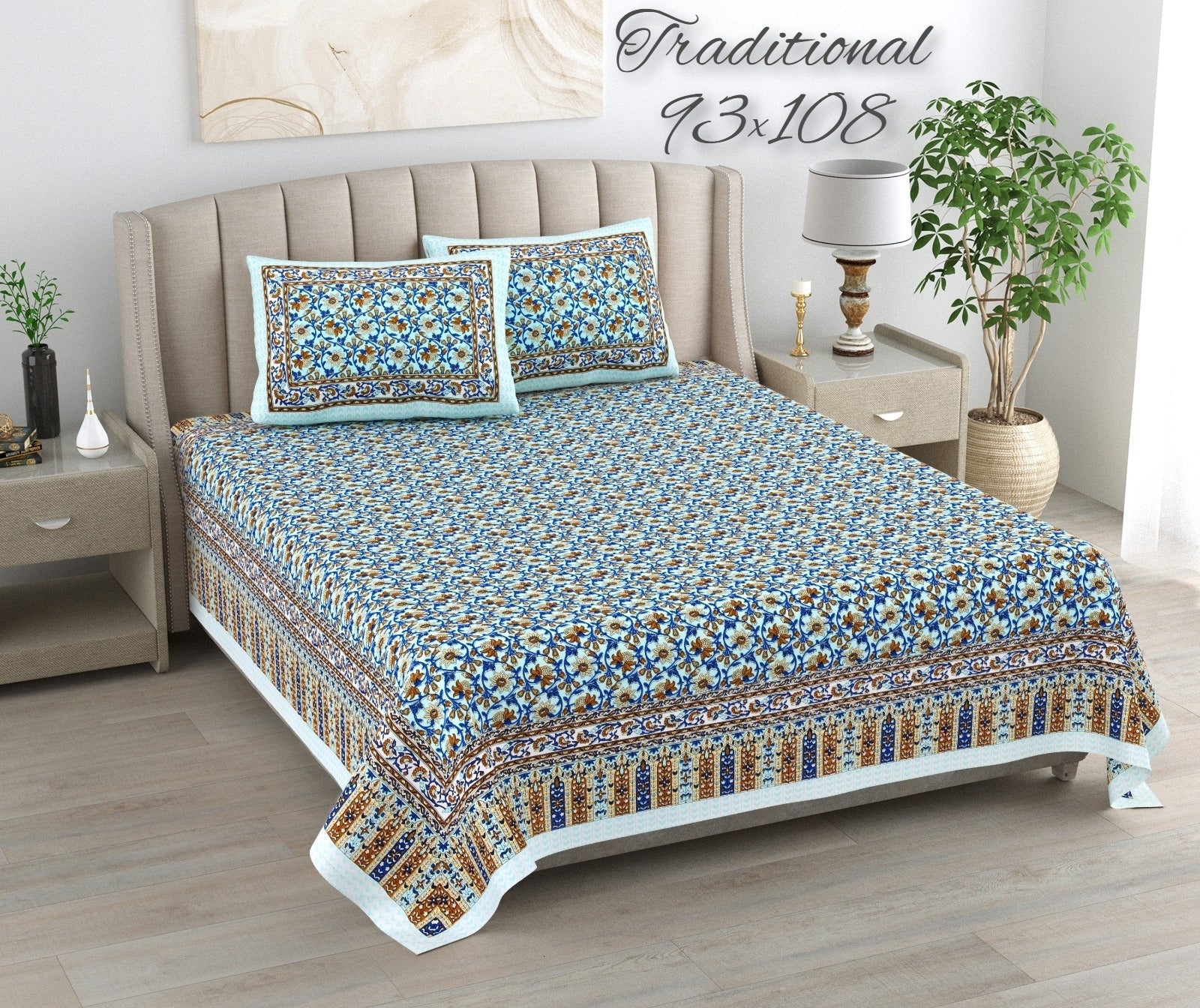 100%pure cotton traditional design bedsheet with 2 pillow cover